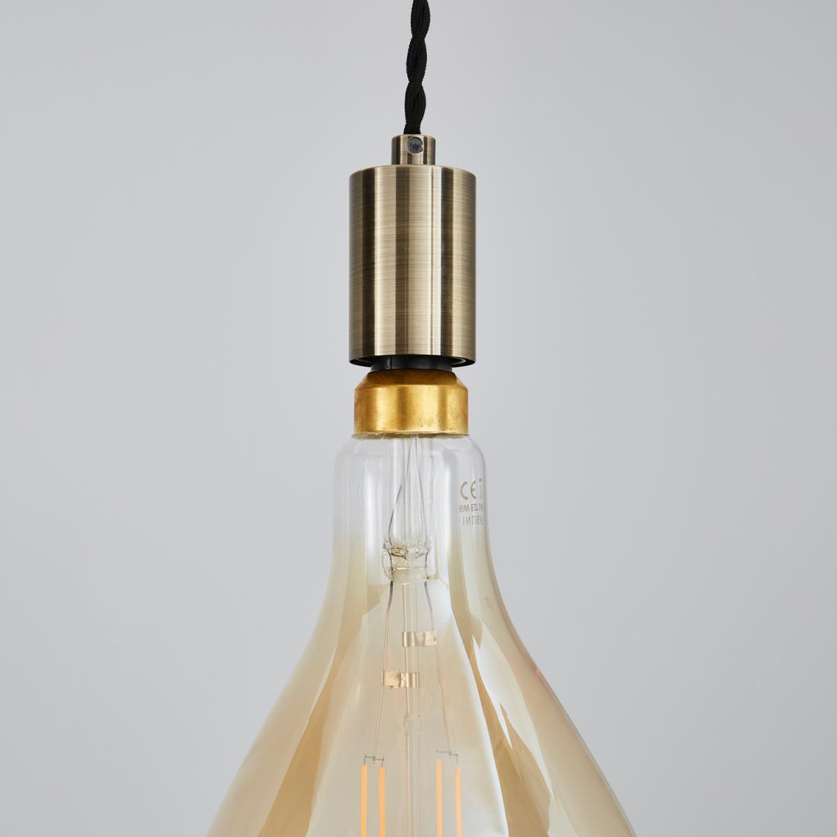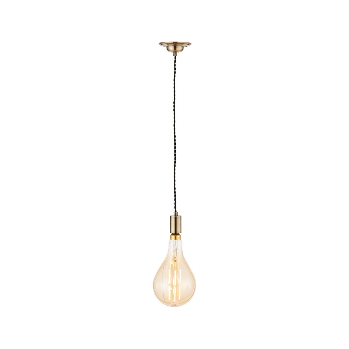 The Anton Ceiling Pendant with Oversized Bulb in Antique Brass is a chic accent for any bedside table or kitchen diner. The antique brass finish of this 1 light pendant pairs gorgeously with the vintage style filament bulb included giving the light a timeless look. The minimalist black cable of this ceiling light is adjustable making this a versatile lighting solution for your home.