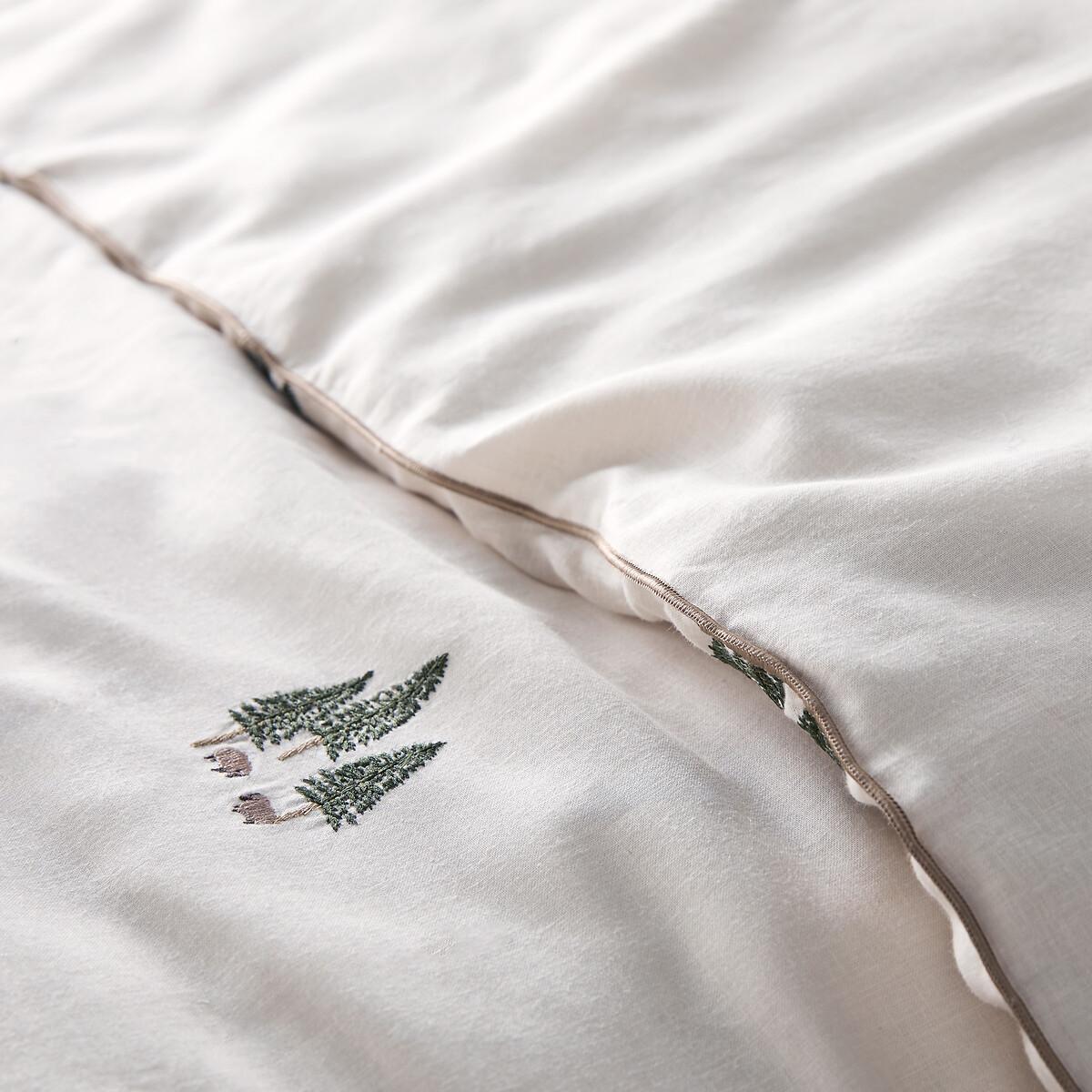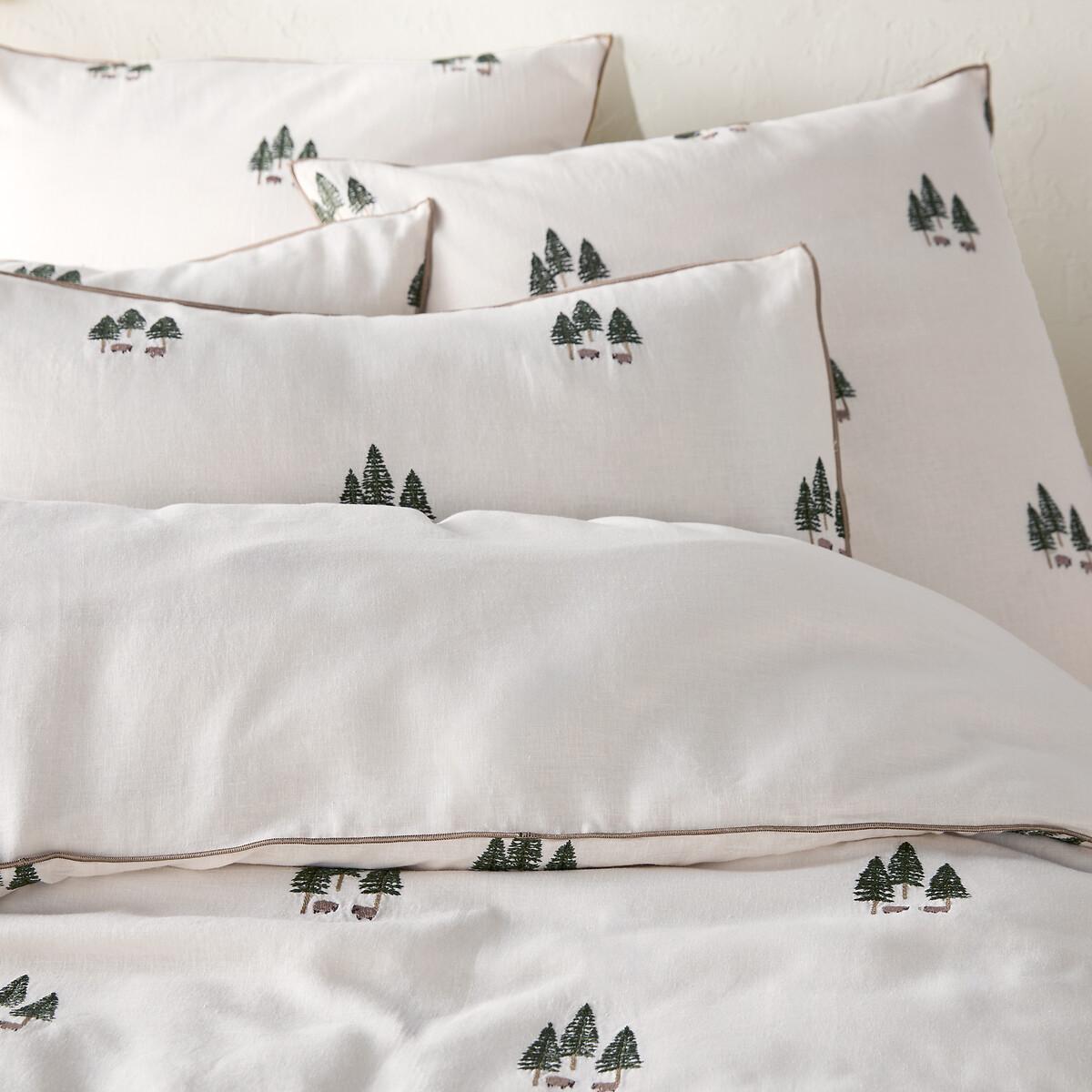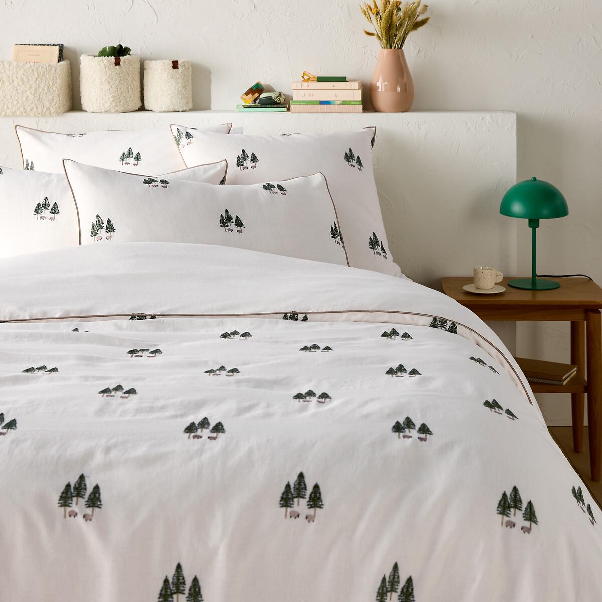 Embroidered fir trees and sheep evoke a traditional feel on the Anton washed cotton and linen duvet cover. The piping outline highlights the elegance of the pattern. Created by La Redoute Intérieurs. Washed cotton/linen combines the softness and suppleness of cotton with the raw appearance of linen. Its slightly wrinkled appearance is incredibly on-trend, and it does not require ironing. Product Details • 50% cotton, 50% linen • Pre-washed fabric • Straight buttoned hem • Fir trees and sheep embroidered on the front • Plain on back • Bourdon edging. Match this item with the rest of the bedding in the range for a stylish bedroom. And you can mix and match it with items from the Annaba range when you want to change things up and create your own unique look. Care Advice • Machine washable at 60°C • By washing your laundry at 40°C instead of 60°C, you limit energy consumption. Dimensions • 140 x 200cm: Single • 200 x 200cm: Double • 240 x 220cm: King • 260 x 240cm: King • OEKO-TEX® Standard 100. Standard 100 certification by OEKO-TEX® tests textile products for harmful substances via an independent, international label.