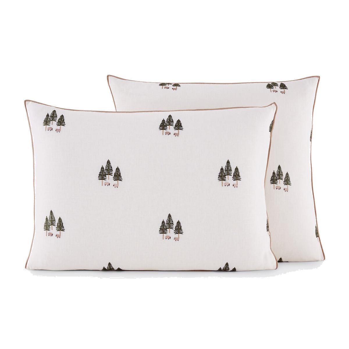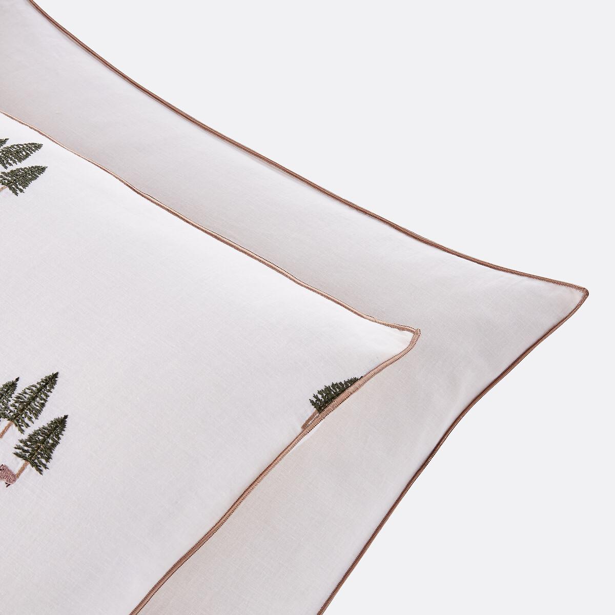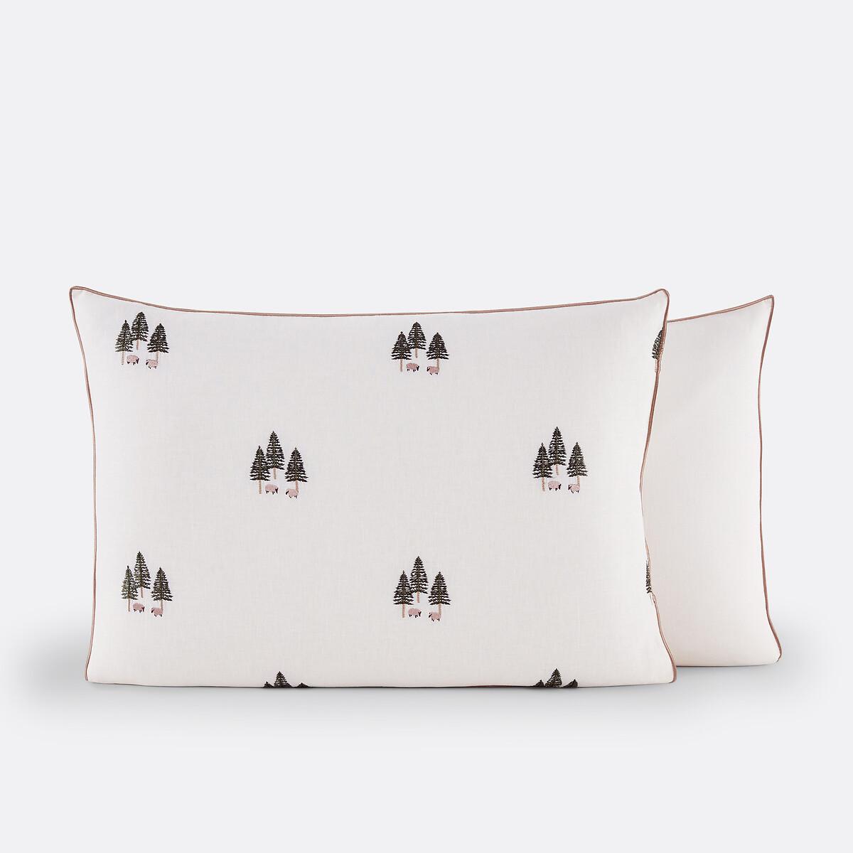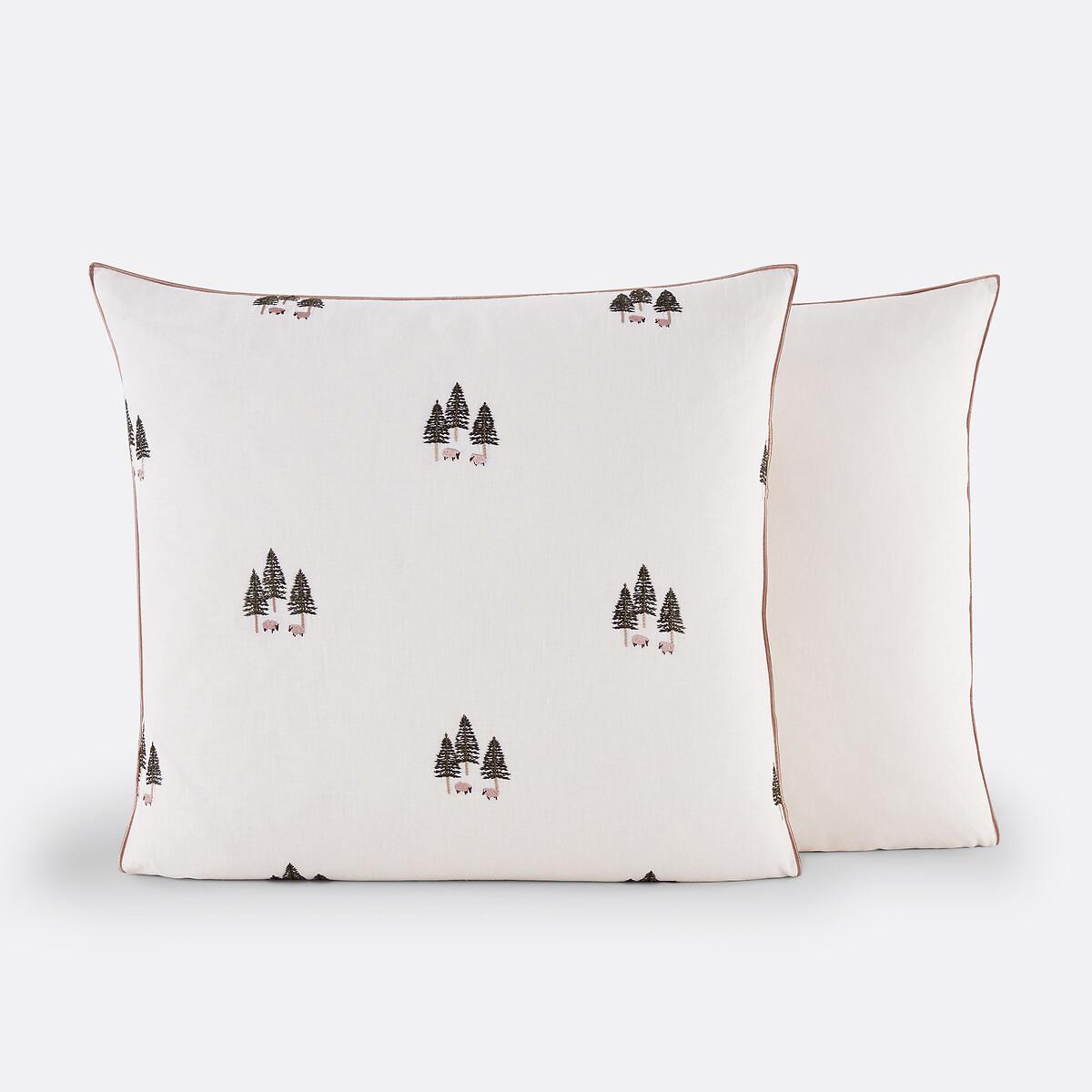 Embroidered fir trees and sheep evoke a traditional feel on the Anton washed cotton and linen pillowcase. The piping outline highlights the elegance of the pattern. Created by La Redoute Intérieurs. Washed cotton/linen combines the softness and suppleness of cotton with the raw appearance of linen. Its slightly wrinkled appearance is incredibly on-trend, and it does not require ironing. Product Details • 50% cotton, 50% linen • Pre-washed fabric • Fir trees and sheep embroidered on the front • Plain on back • Bourdon edging • Sold individually. Match this item with the rest of the bedding in the range for a stylish bedroom. And you can mix and match it with items from the Annaba range when you want to change things up and create your own unique look. Care Advice • Machine washable at 60°C • By washing your laundry at 40°C instead of 60°C, you limit energy consumption. Dimensions • 50 x 70cm: Rectangular pillowcase • 63 x 63cm: Square pillowcase • 65 x 100cm: Rectangular pillowcase • OEKO-TEX® Standard 100. Standard 100 certification by OEKO-TEX® tests textile products for harmful substances via an independent, international label.