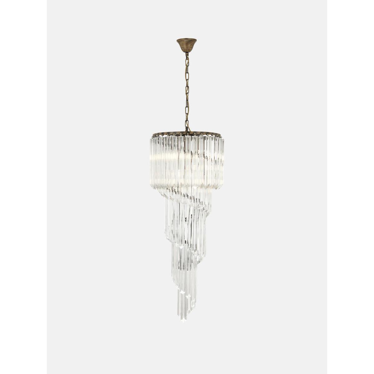 The Antonella pendant is a statement light inspired by thecentral chandelier that hangs in the bar at Babington House. Madein Italy, the chandelier is pieced together from mouth-blown glassand formed into a tapered silhouette with a swirled design. Displayit in large spaces, a room with high ceilings or a stairwell, tobring a touch of glamour to your interiors. Chandelier in mouth blown Murano glass. Tapered silhouette. Swirled design. Made in Italy using traditional techniques. Ideal for larger spaces and high ceilings. Inspired by the chandelier in the bar at Babington. House.