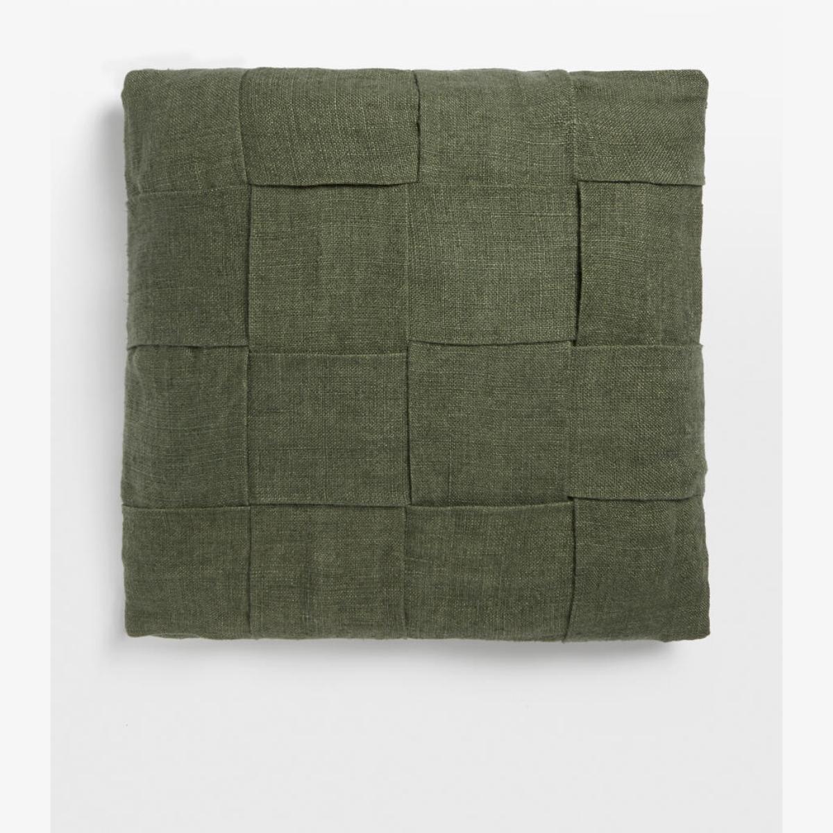 The Antonia cushion is crafted from a cotton-linen blend for a textured finish. Taking cues from the neutral schemes at Soho Farmhouse, the cushion is made up of panels that have been woven together to create dimension. • Antonia cushion • Olive colourway • Panels woven together • Cotton-linen blend • Inspired by Soho Farmhouse