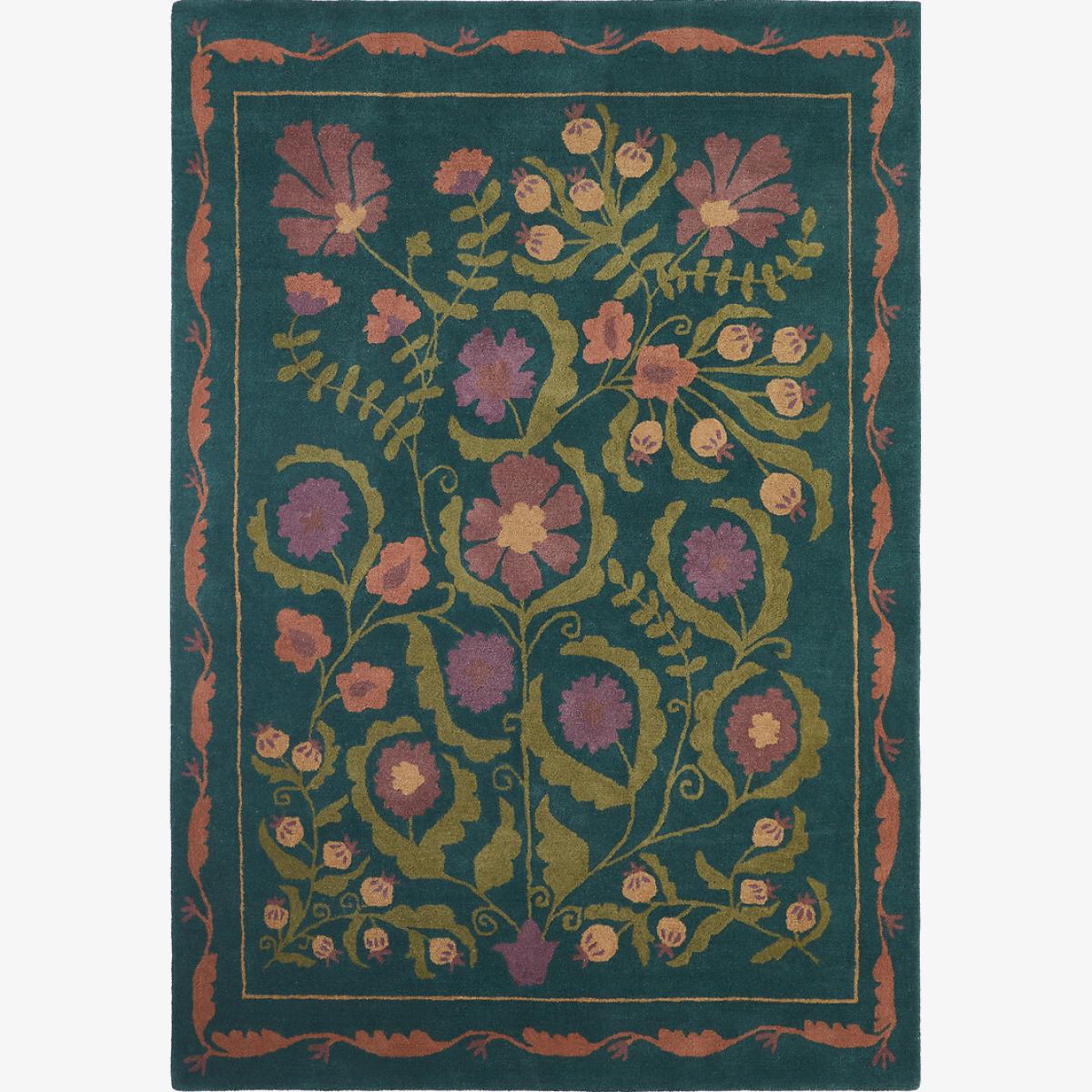 Floral and plant prints. Mix of deep colours. The Antonia rug evokes a rich universe inspired by ancient tapestries. Hand-woven in wool, its delicate designs will look great in a living room, dining room or bedroom. Product Details • 100% wool • 4200g/m2 • Thickness: 1.2cm • Weaving type: Handmade • Underfloor heating compatible: No • Interior Use:Yes • For outdoor use: No. Quality Info • Wool is a warm and comfortable fibre. A wool rug is also an excellent thermal and sound insulator. • Hand-braided, each piece is unique and may have small irregularities which make it authentic.. Colours and dimensions may vary slightly. Care advice • Once unrolled, you must wait a few days for the carpet to return to its initial shape.. • To keep the edges flat, roll your mat in the opposite direction. Leave it like this for an hour then put it back flat and place a heavy object on it for 2 days. • New, the carpet may give off an odour which dissipates over time. Remember to regularly ventilate your room to reduce it. • To preserve its appearance, rotate your rug regularly in one direction or the other to minimise localised wear in the same places (due to successive passages), and loss of colour due to regular light. Care Advice • Some materials are very fibrous (like wool) and you can actually observe pilling in the first weeks of use. : this is normal because the carpet "bursts" by rejecting its excess fibres. Remove lint as much as possible by hand and do not use the vacuum cleaner in brushing mode as this will pull the fibres and tear them out.. The pilling will improve over time. • For maintenance, we advise you to vacuum it very little the first month and then to vacuum it without rubbing too much always without using the brush. • Compatible with robot vacuum cleaners: No • Remove stains immediately with a clean, damp cloth. • Dry clean recommended. Dimensions • Width 120 x Length 170cm • Width 160 x Length 230cm • Width 200 x Length 290cm • OEKO-TEX® Standard 100. Standard 100 certification by OEKO-TEX® tests textile products for harmful substances via an independent, international label.