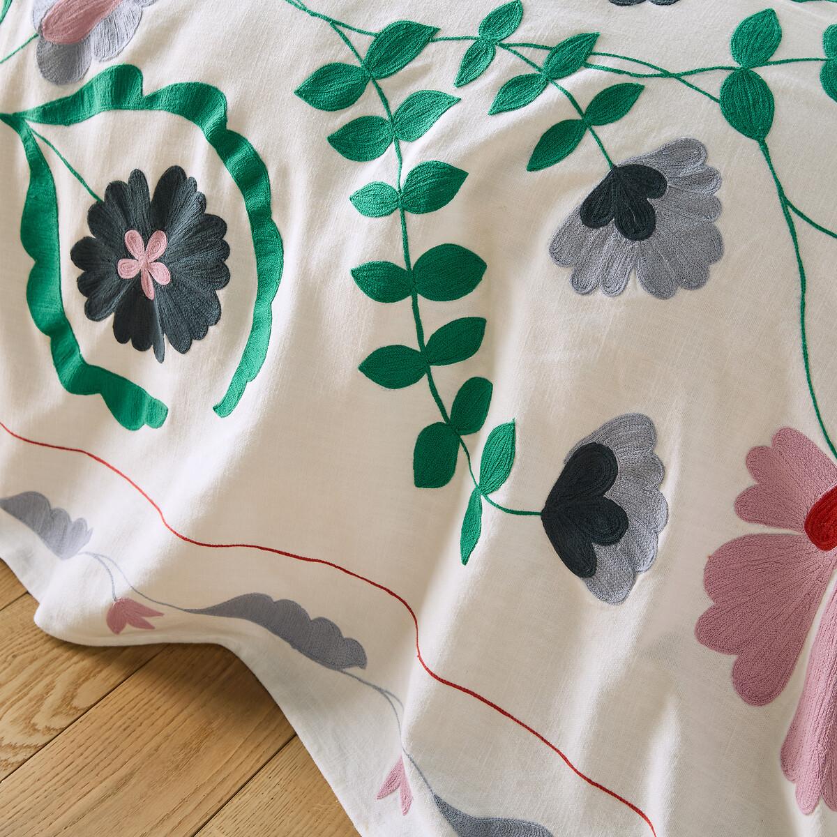 Antonie Floral Embroidered 100% Slub Cotton Bedspread