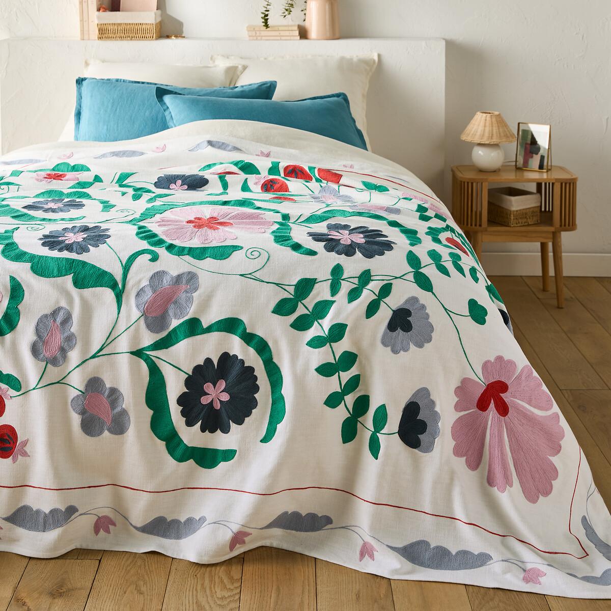 The Antonie bedspread, made from slub cotton, features embroidered motifs in chain stitch. A stylish creation full of flowers, with folkloric inspirations. Cotton is part of our daily lives. We love it for its suppleness and softness. Easy Care, it is ideal for the beds of young and old alike!Product Details • 100% cotton • Slub cotton • Plain back • Chain stitch embroidery Care Advice • Machine washable at 30°CSizes • 180 x 230cm • 230 x 250cm • OEKO-TEX® Standard 100. Standard 100 certification by OEKO-TEX® tests textile products for harmful substances via an independent, international label.