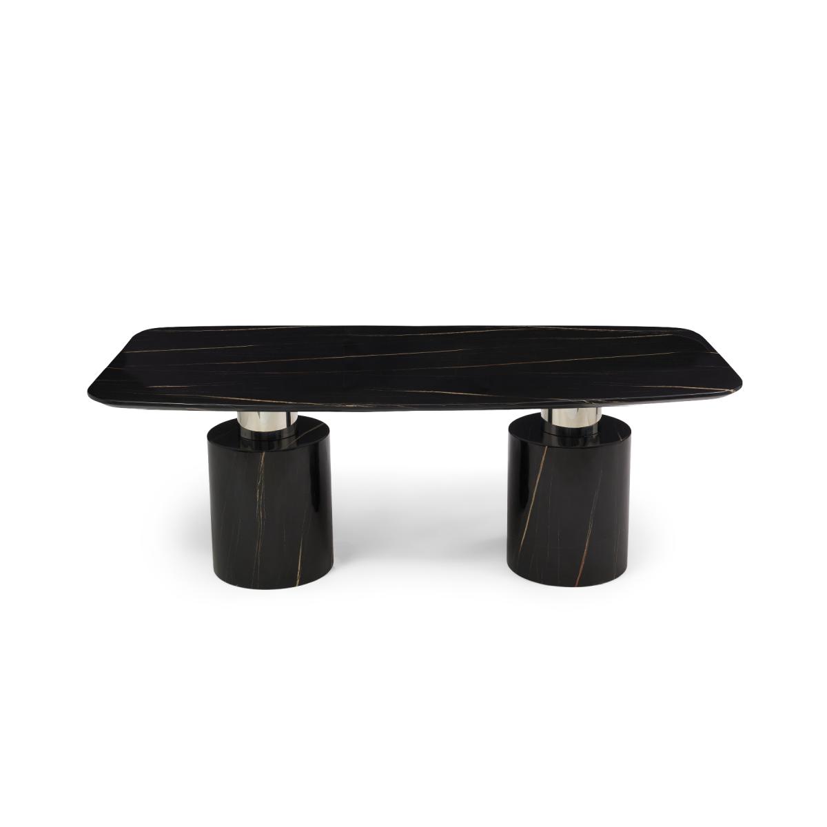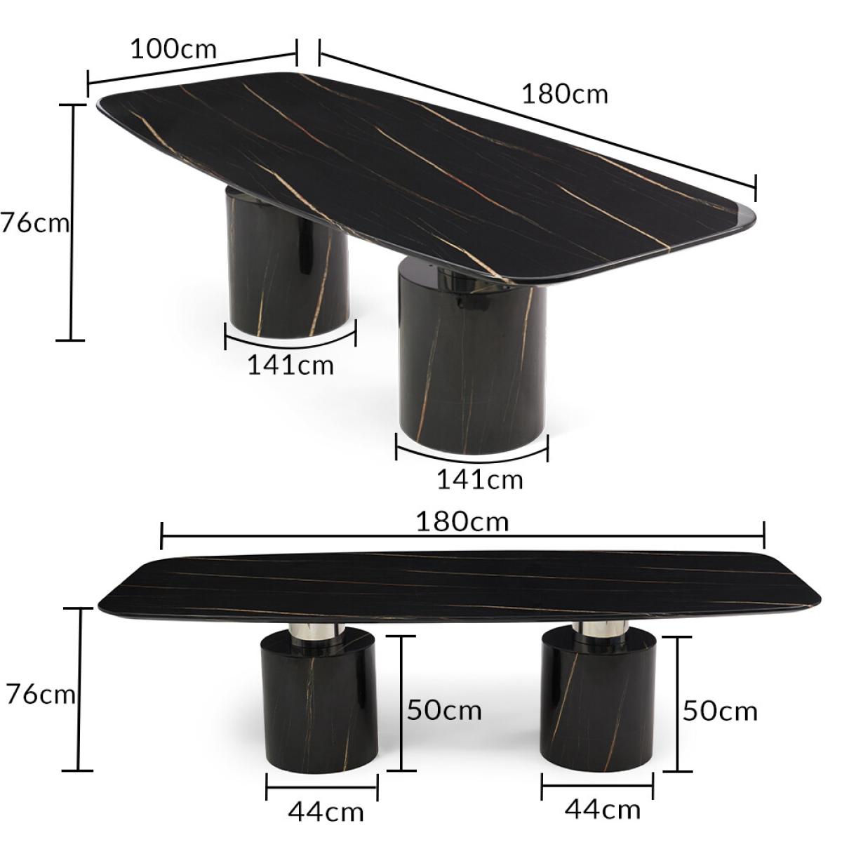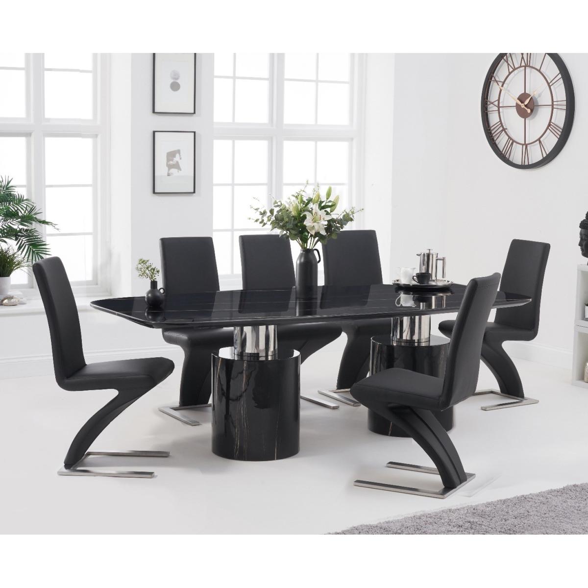 Antonio 180cm Black Marble Dining Table With 8 Black Aldo Chairs