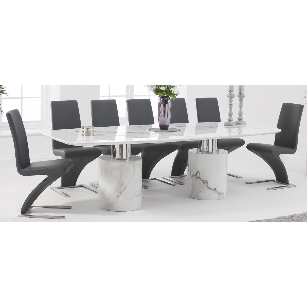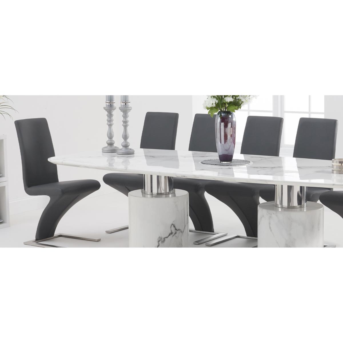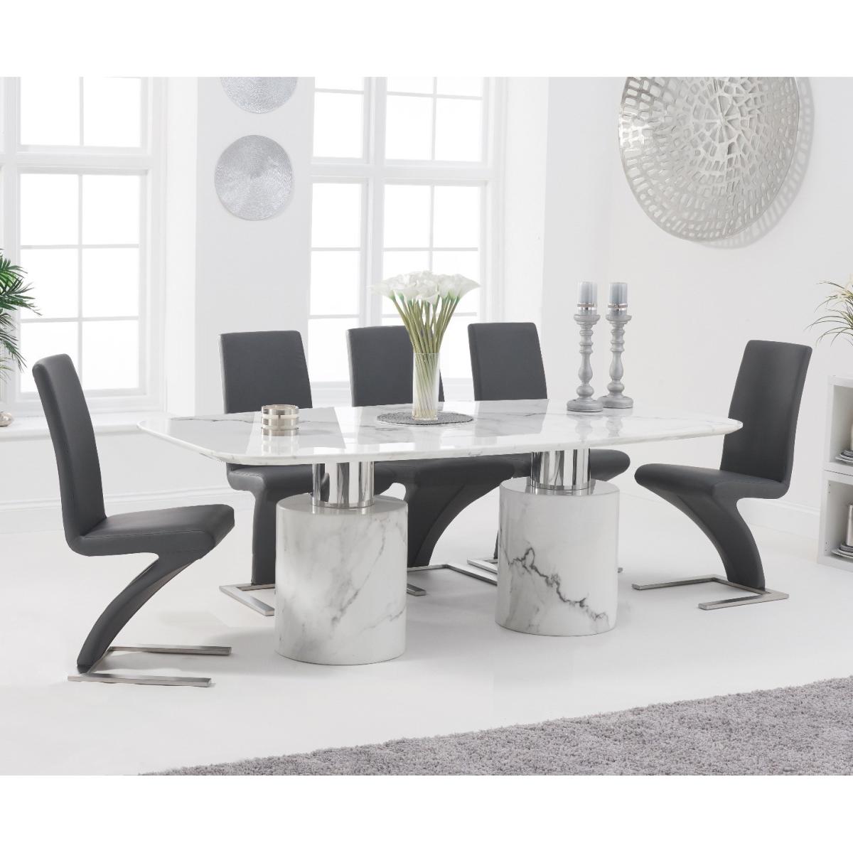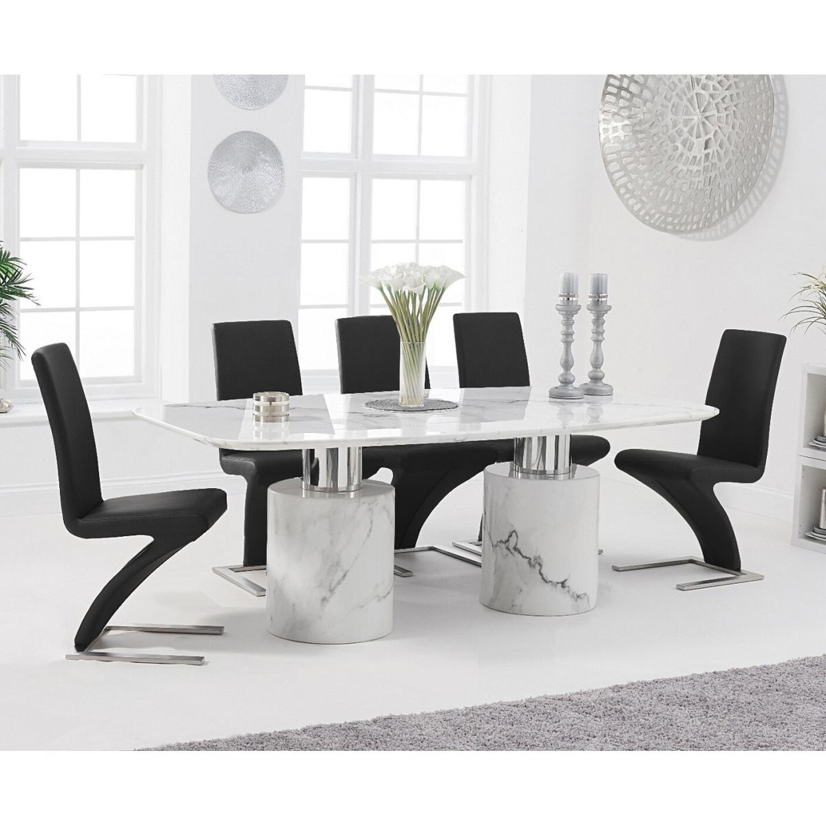I really like this set for its clean, modern aesthetic. The white marble top adds an element of elegance, making it a striking centrepiece that works well in contemporary, minimalist, or Scandi-inspired interiors. The matching white chairs keep the look cohesive and light, which is ideal for brighter spaces. For styling tips, consider adding a pop of colour through accessories like placemats, vases, or chargers to prevent the set from looking too clinical. It's also versatile enough to pair with both soft textiles and metallic accents, making it suitable for both casual everyday dining and more formal occasions. When positioning the table, make sure to allow enough space for easy movement around it, especially if you opt for larger, comfortable chairs.