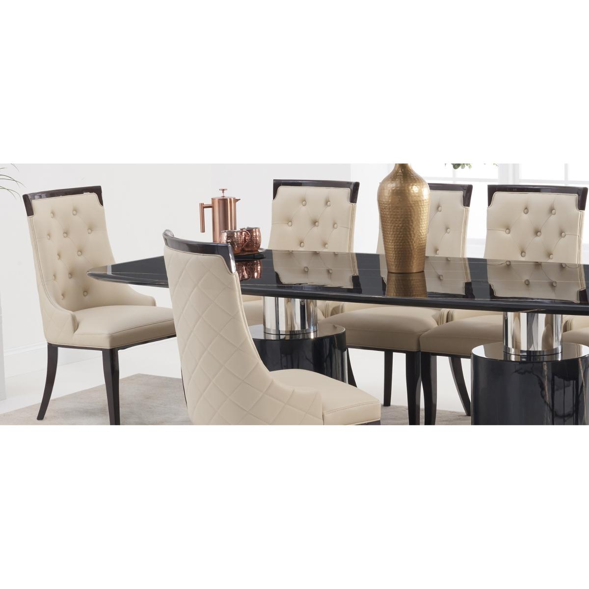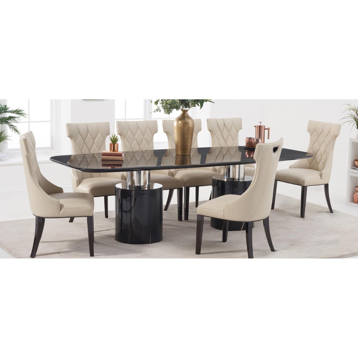 Antonio 220cm Black Marble Dining Table With 10 Grey Francesca Chairs