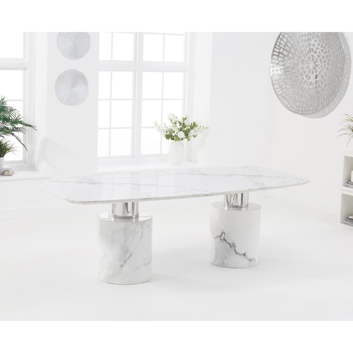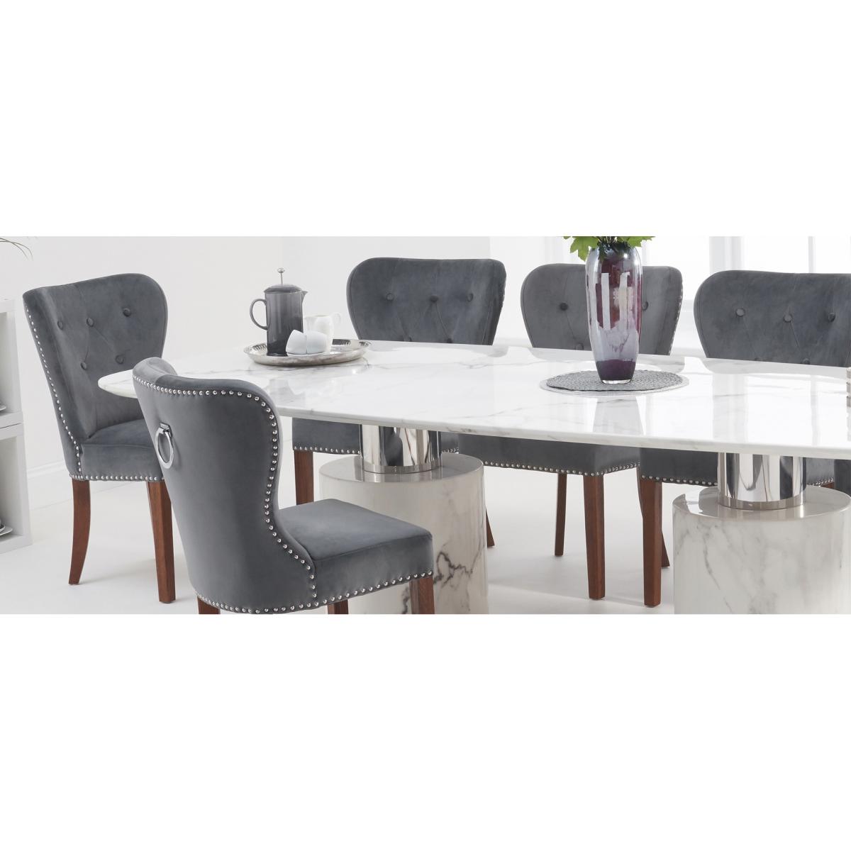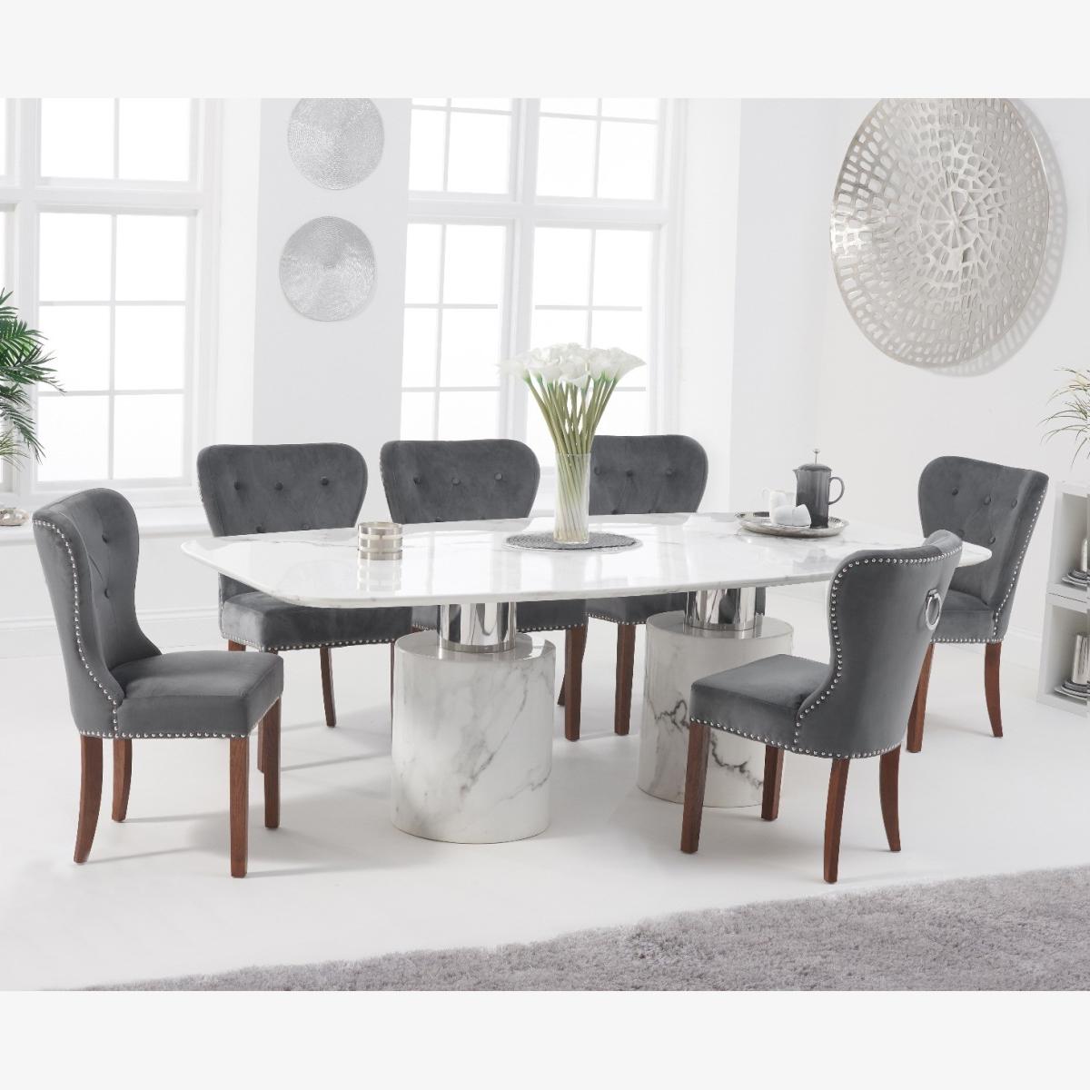Antonio 220cm White Marble Dining Table With 6 Grey Keswick Chairs