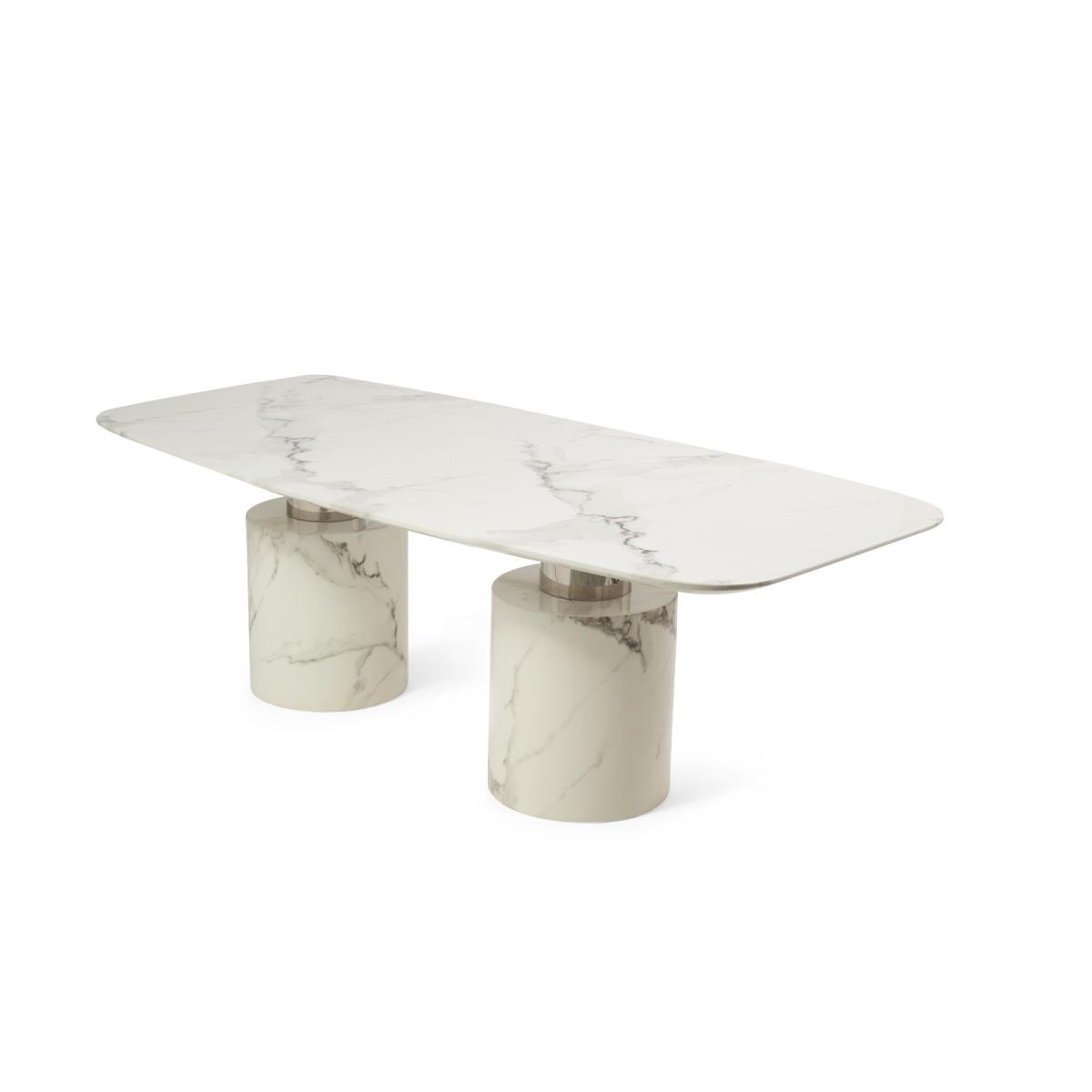 Stunning in any contemporary space, the Antonio table's glossy, white marble finish is smooth, modern and conveniently wiped clean.