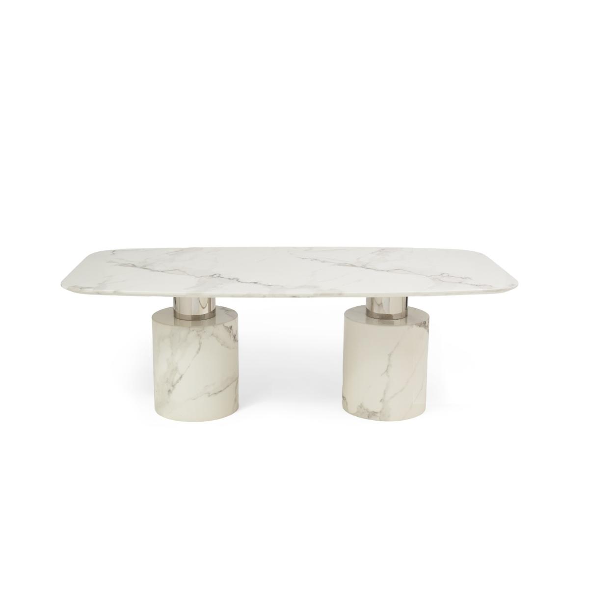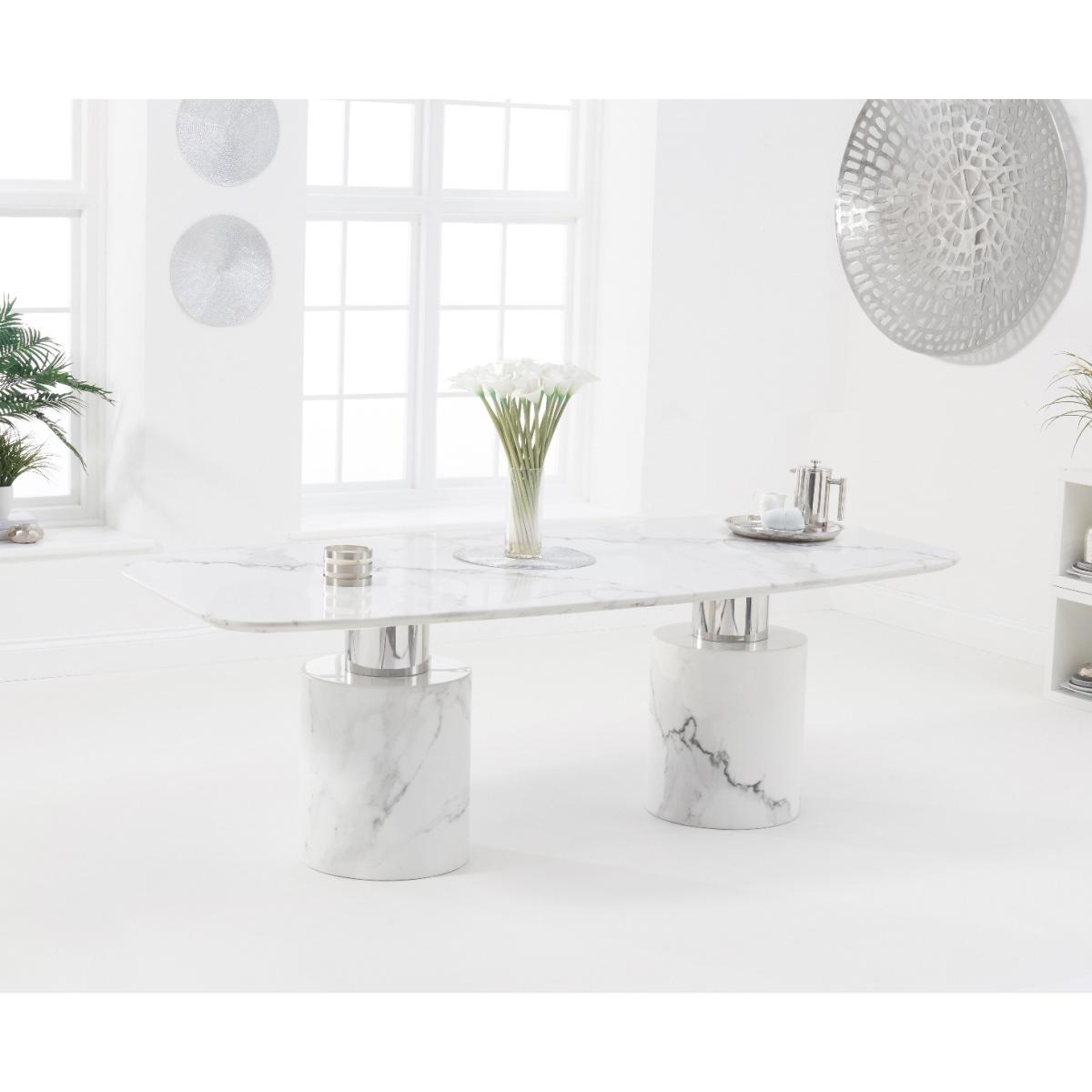 The Antonio 220cm white marble dining table with Sophia chairs is a striking dining set and a perfect addition to your dining room