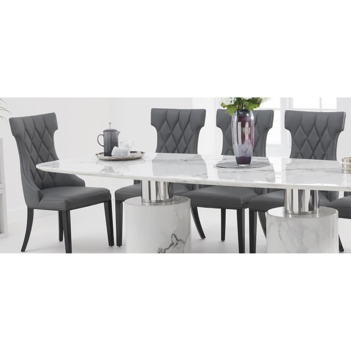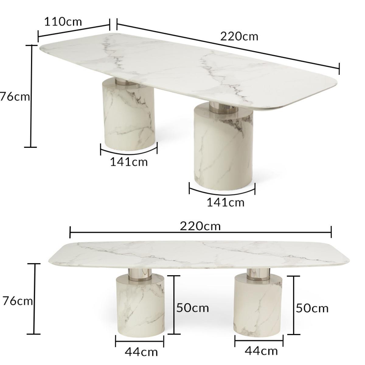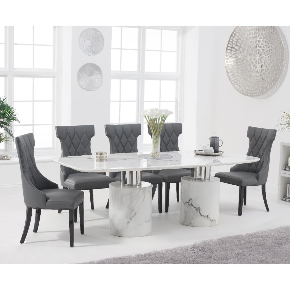 The Antonio 220cm white marble dining table with Sophia chairs is a striking dining set and a perfect addition to your dining room