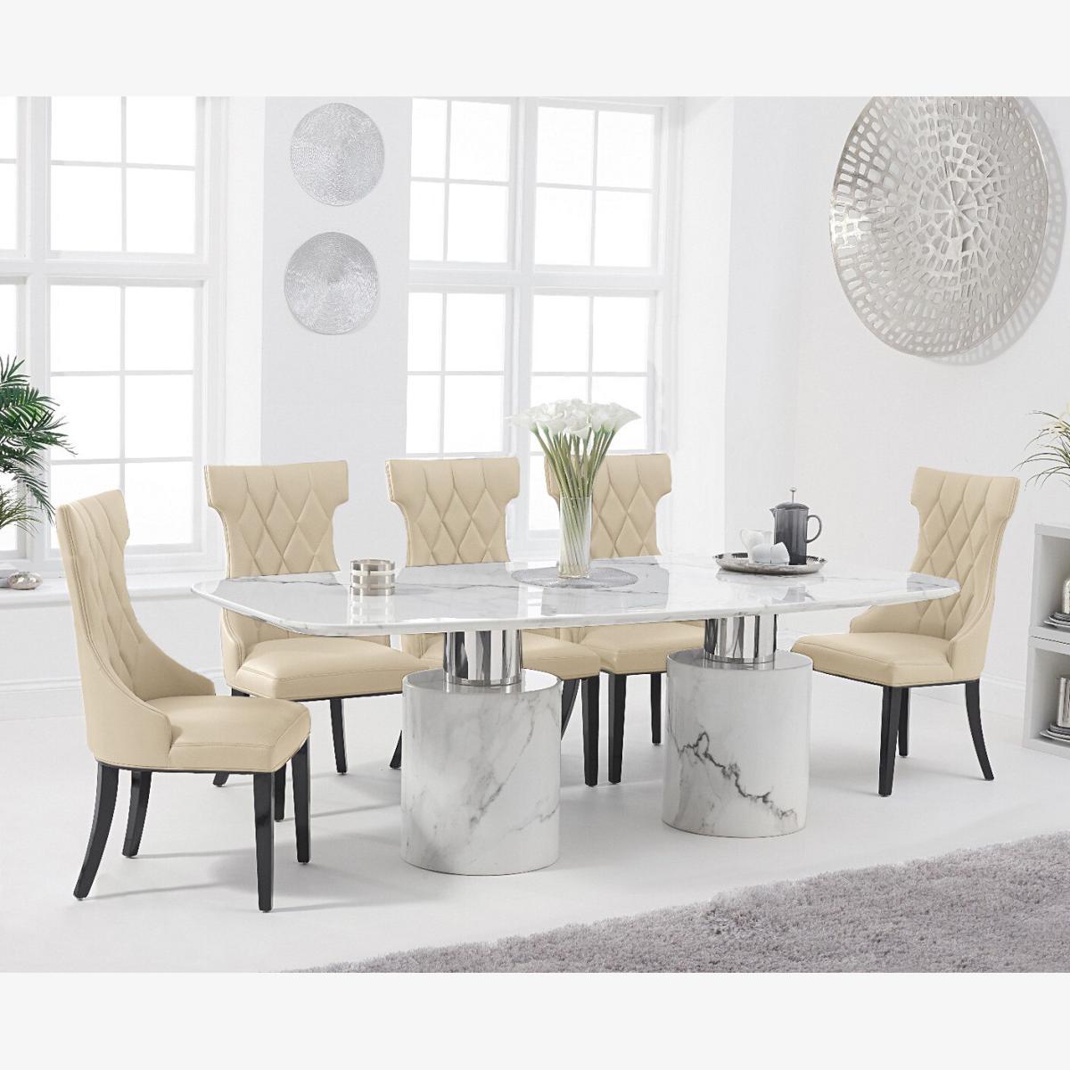 Antonio 220cm White Marble Table With 8 Cream Sophia Chairs