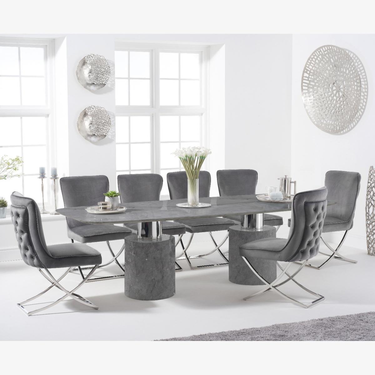 Antonio 260cm Grey Marble Table With 10 Grey Lorenzo Velvet Chairs