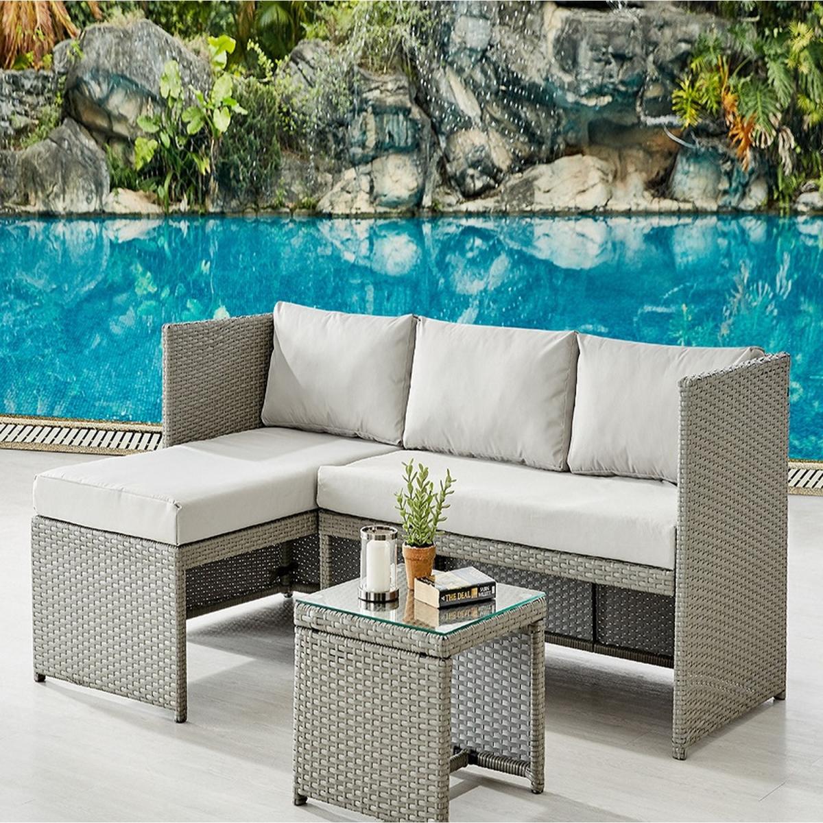 Stylish and comfortable, our brand new corner sofa garden set is the perfect addition to your home in the garden, patio, or conservatory. The outdoor garden set comes with a 2 seat sofa, a chaise, and a glass coffee table. All seats come with a comfortable back and seat cushions with removable covers for easy cleaning. This luxurious garden lounge set comes in a beautiful PE rattan which suits any modern home garden. The garden set is durable and for outdoor use all year round in mild to warm weather.. Although the cushions are weather-proof, we do not advise leaving them out in adverse weather conditions for long periods of time. We recommend the whole set be moved indoor over the winter. While the cushions have zips, we advise against removing the covers because they are challenging to put back on. If necessary, apply upholstery shampoo and store cushions indoors while not in use. This set does not come with a cover - we recommend you purchase a waterproof cover to preserve your garden set when not in use. This stunning garden set is the perfect addition to any back garden, providing you with comfort and style. This garden set will provide you with outdoor dining and somewhere to relax in the fresh air.