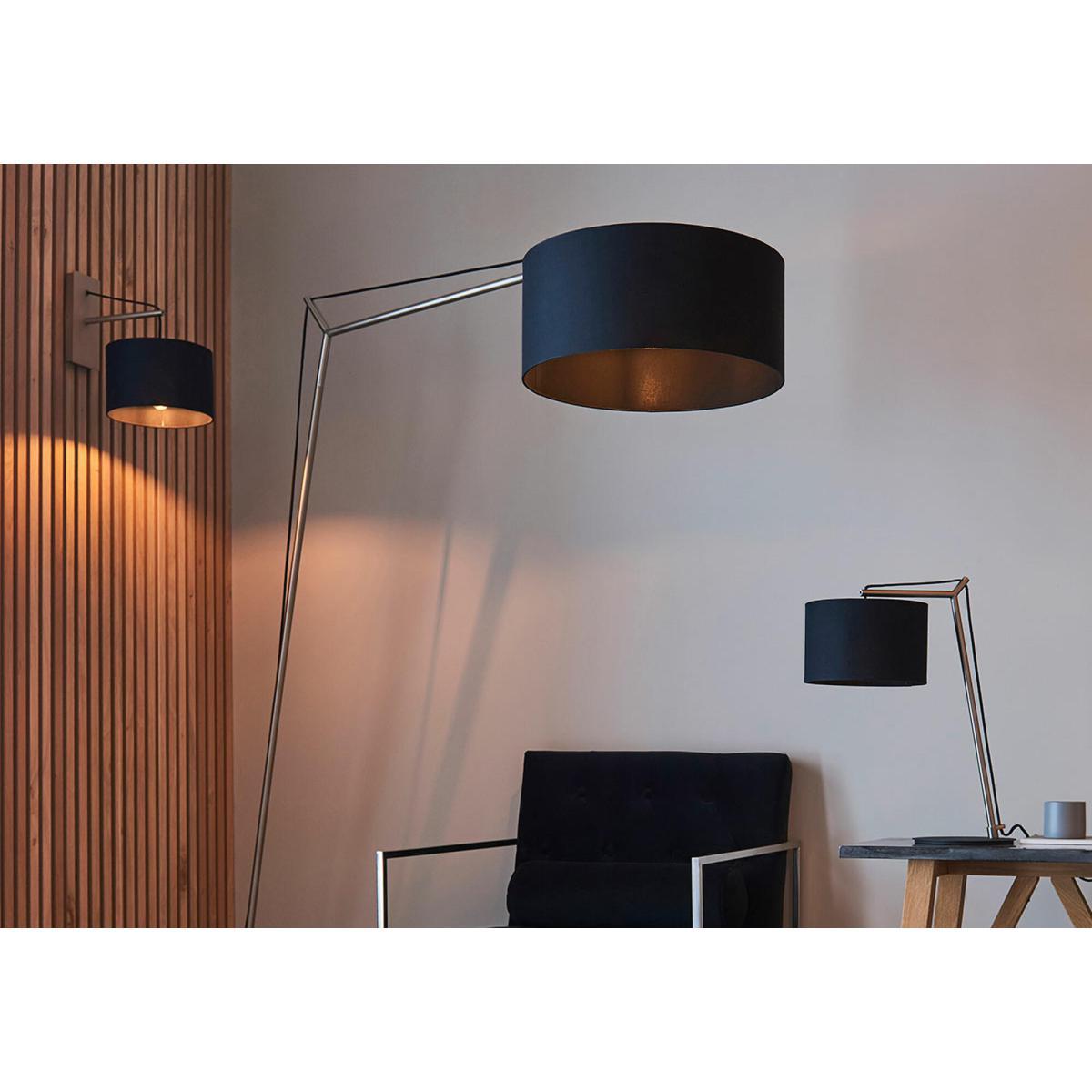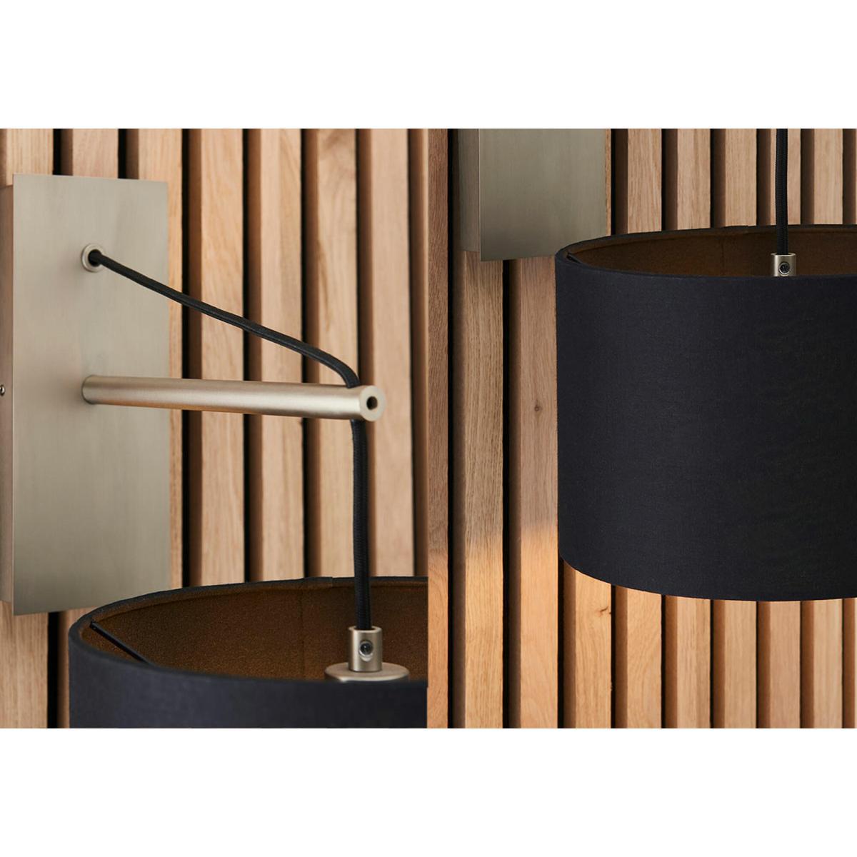 Kit out your home with the modern black accents of our Antonios range. Clean structured lines and soft black fabric shades define this range, and its versatility should not be underestimated. Whether you have a light space in need of some contrast, or a dramatic interior craving extra richness, this range provides floor lamps, table lamps and wall lights for every crevice of the room. This wall light, finished in matt nickel with an exposed fabric flex, is a striking alternative to a more subtle mounted wall fixture, easily complementing other geometric features in the room, natural woods and monochrome colour palettes.