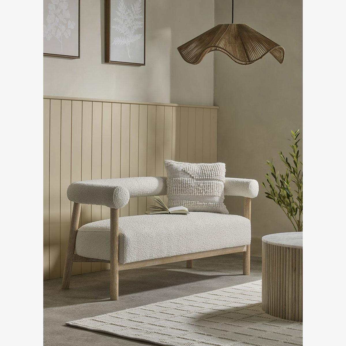 Our Antti sofa is packed with comfort and style. The simple light wood frame is complemented by a neutral boucle effect upholstery, offering a quiet and understated sofa that works in a variety of home styles.