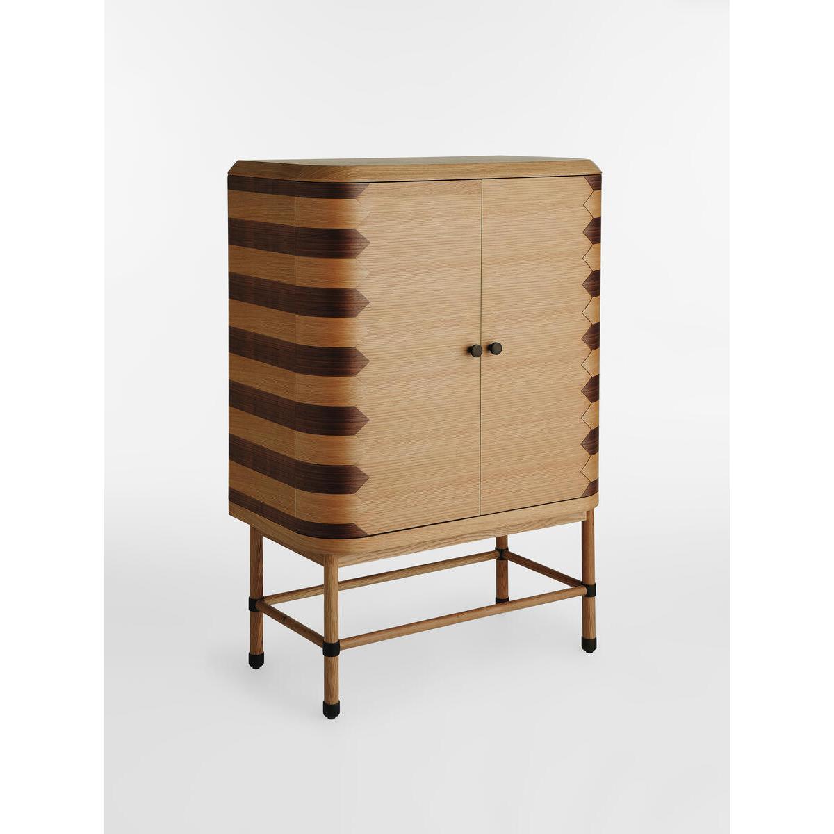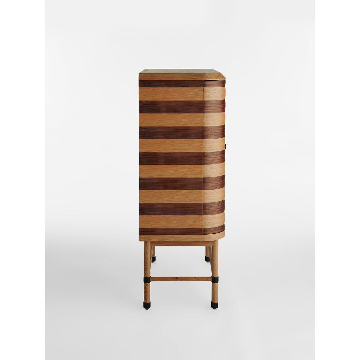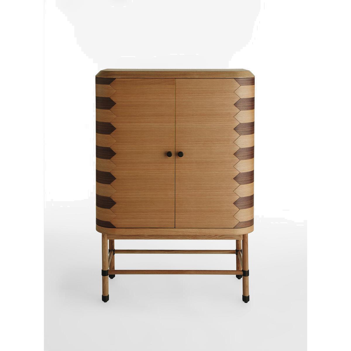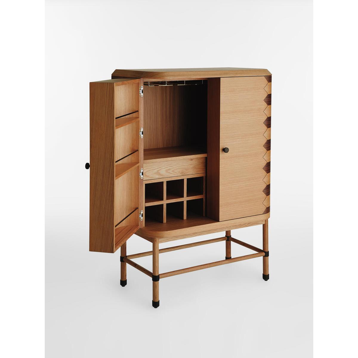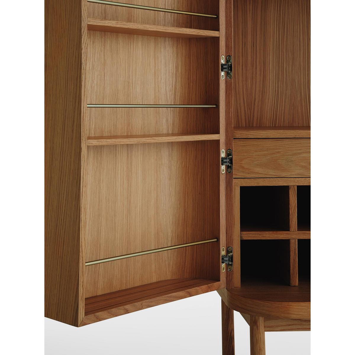 The Anuel drinks cabinet showcases the appeal of mixed materialsin a functional design. The oak and walnut wooden body is accentedwith blackened brass hardware. Providing a practical storage space,it opens with sleek handles to reveal an organised interior,complete with wine storage, a wineglass hanging rack and draw anddoor storage. Blackened brass handles. Solid oak and ash. Inspired by Soho House Rome.