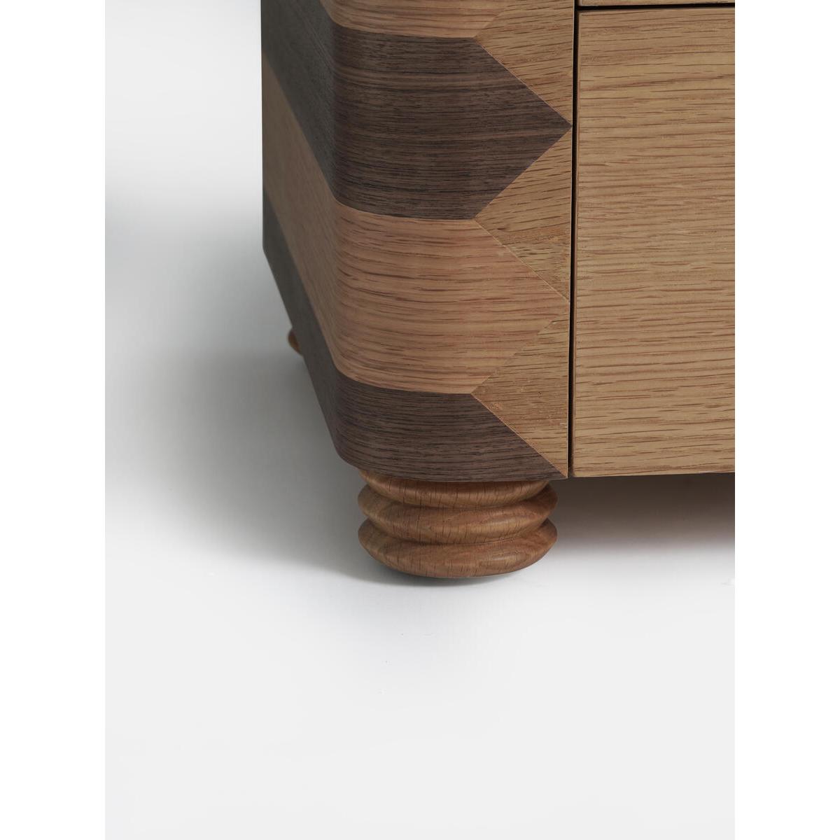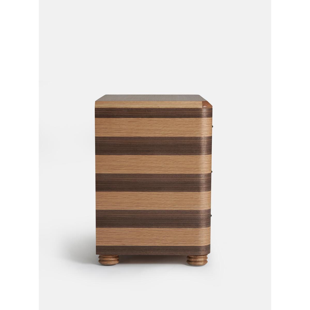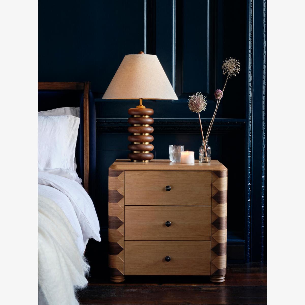 Inspired by our House in Rome, this bedside cabinet is crafted from solid oak and walnut with blackened brass handles for a streamlined shape. Its tactile, natural oak finish lends itself to a variety of interior settings, be they classic or contemporary. • Three drawer side cabinet • Blackened brass handles • Solid oak and walnut • Inspired by Soho House Rome