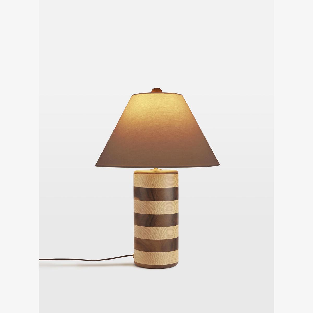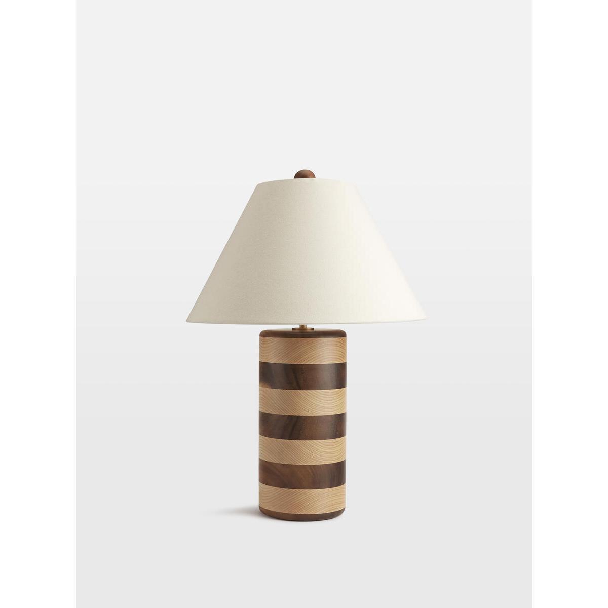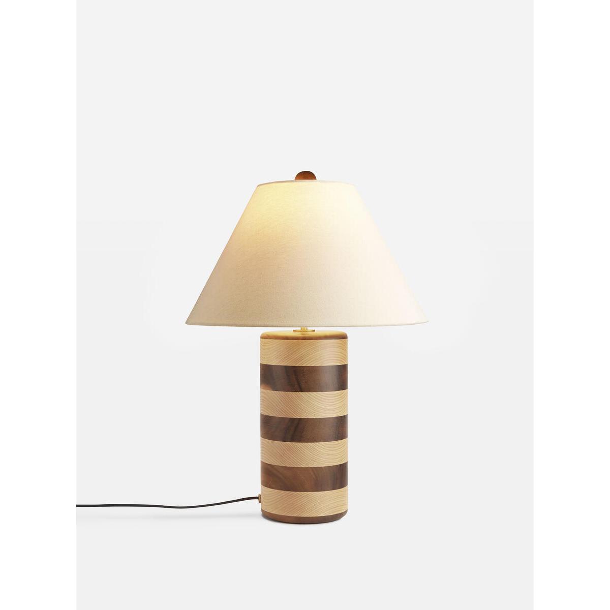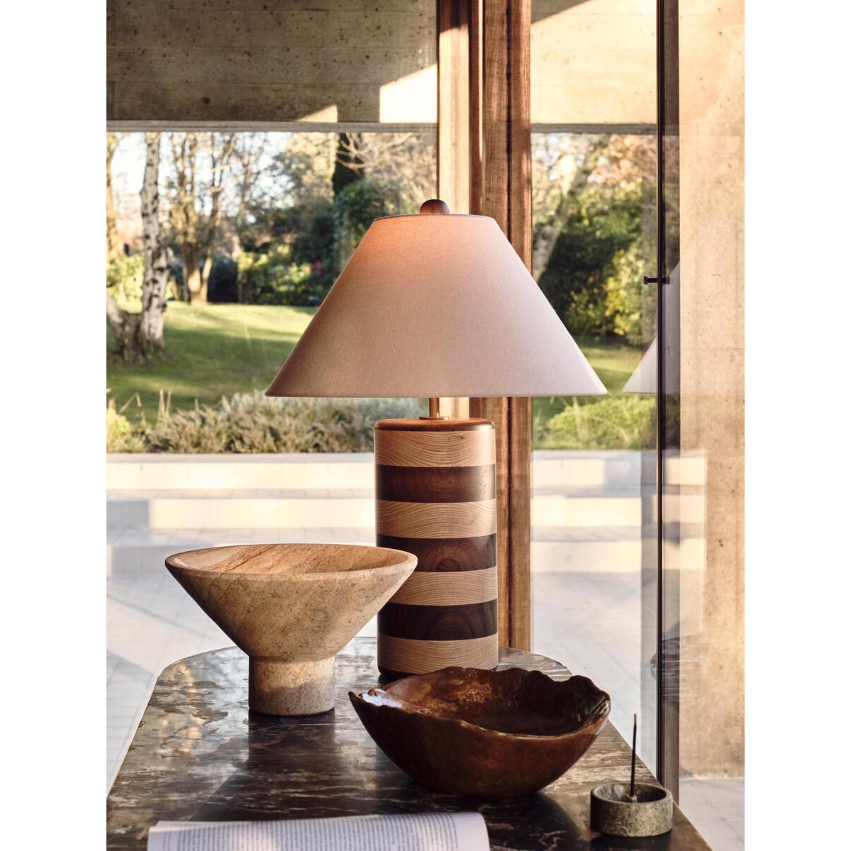 An extension of the Anuel furniture range, the Anuel table lamp has a tonal stripe design in ebonised wood and natural oak, taking inspiration from Soho House Rome. Complemented with a cream linen shade, this lamp will update a side table with a bold design aesthetic. Wooden table lamp Ebonised wood and natural oak Cream linen shade Inspired by Soho House Rome