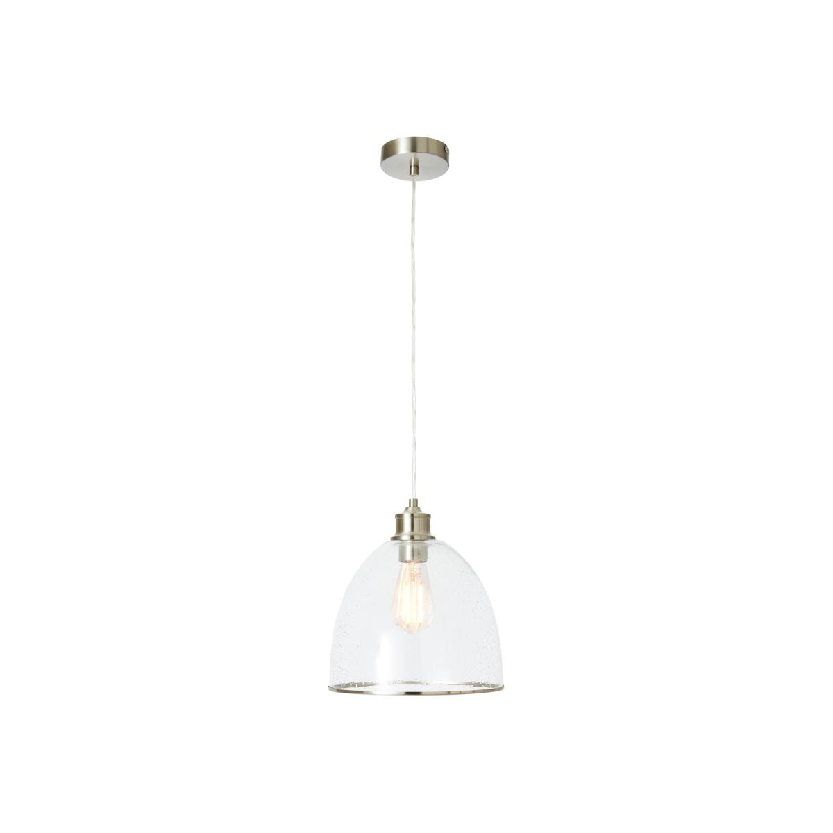 Step up your lighting game with the Anwar 1 Light Ceiling Pendant, featuring a stunning clear bubble-effect glass shade that beautifully diffuses light while adding a touch of elegance. The sleek satin nickel metal frame complements the glass design, creating a modern aesthetic that fits seamlessly into any decor. Perfect for dining areas, kitchens, or entryways, this height-adjustable pendant light not only illuminates your home but also serves as a stylish focal point. Upgrade your lighting with this exquisite ceiling pendant and transform your interior's ambience.