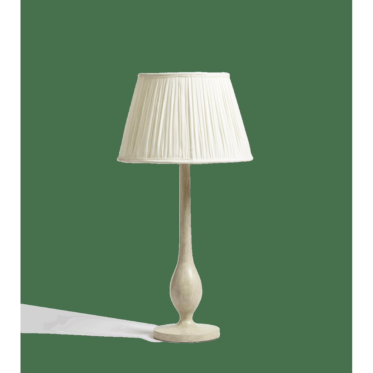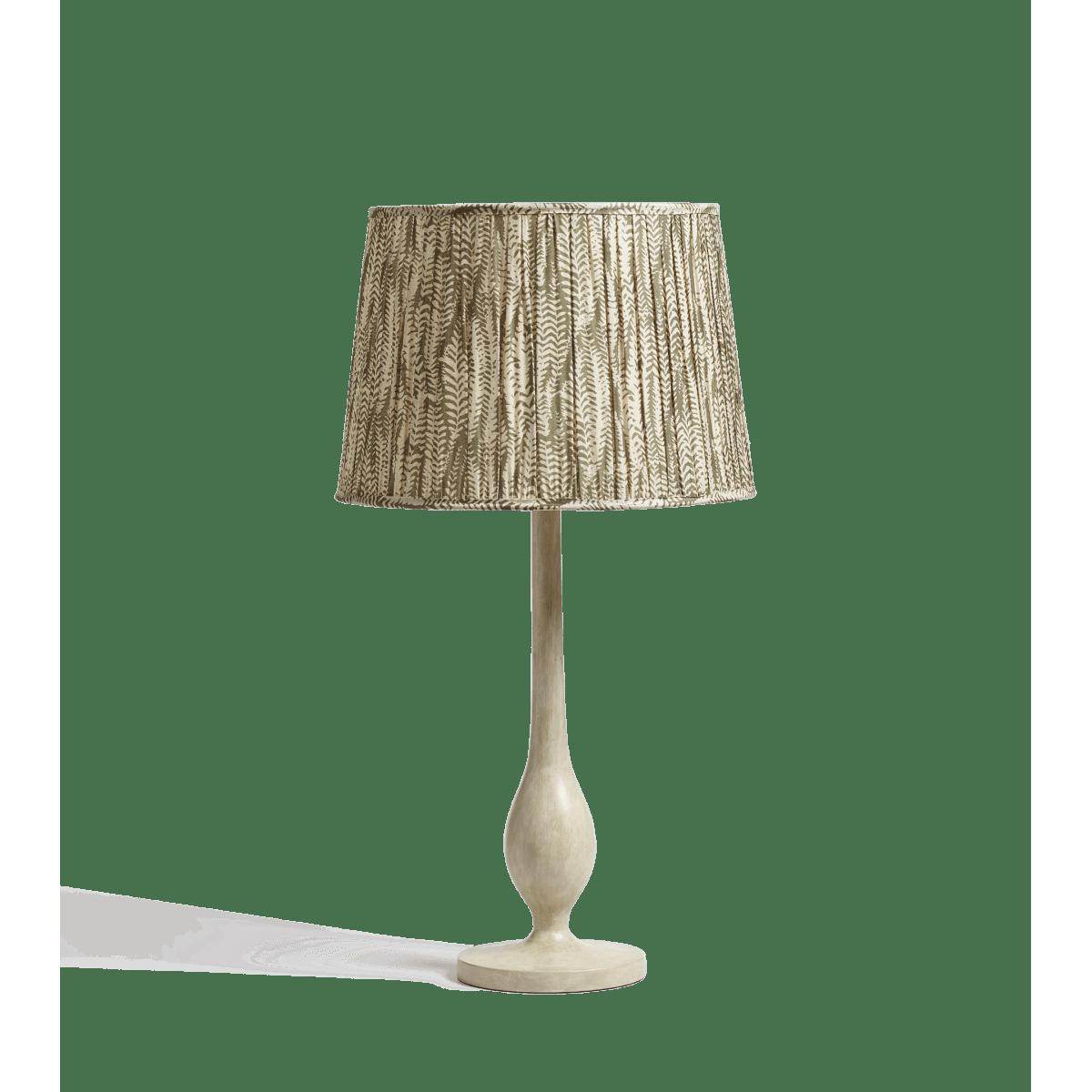 Our Anwar Lamp is a simplified take on traditional turned wood lamps. The mango wood is hand carved and painted in a tone we have developed to appear like the vellum: old fashioned parchment. This artisanal process results in each piece having individual characteristics.