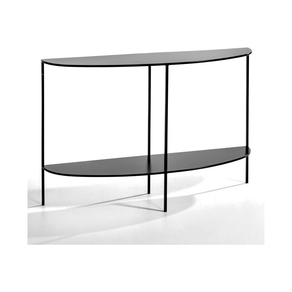 Anya console table. The 2 half-moon tops of this console table bring soft curves while its metal frame brings clean, simple lines to suit any interior.