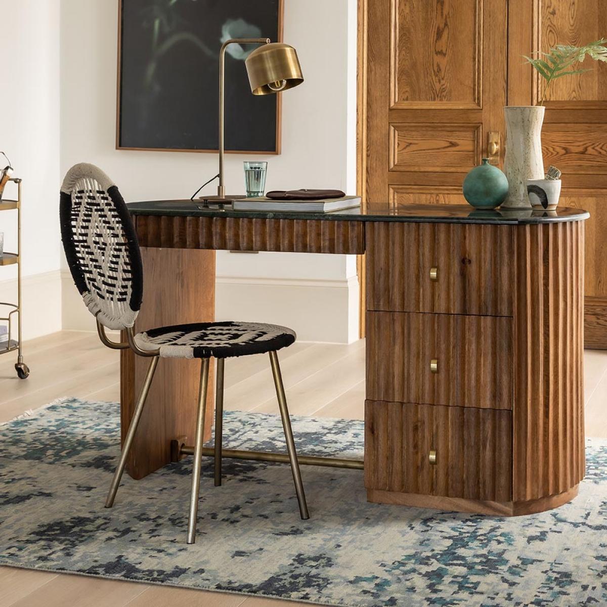 I’m a fan of the woven pattern and subtle mix of neutrals on this chair - it brings textural interest without overwhelming a space. It’s ideal in eclectic or boho settings but equally at home in a pared-back Scandi scheme, where its graphic weave becomes a focal point. Try it as an occasional desk chair against a light wood surface, or tuck it into a reading nook with a soft throw for contrast. Keep surrounding accessories simple - think ceramic vases or a slimline lamp - so the weave remains the main event.