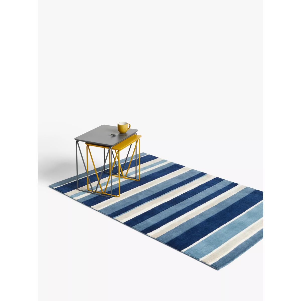 A great option if you're just looking for a subtle style update for your living room, our Amelia Rug is made with a versatile striped pattern that helps create a sense of space. Loomed by hand from a wool-rich blend, it's durable too. Worth knowing: Due to the handmade nature of this rug the size could vary between 85.5 - 94.5cm Width, and 157.5 - 142.5cm Length. About your new rug We recommend John Lewis & Partners Rug Hold Underlay. It prevents your rug from moving underfoot and protects against colour transfer to the floor Shedding is a natural characteristic of wool particularly on new rugs. This will reduce over time and will not affect your rug's performance. Vacuum clean regularly to reduce the shedding. When vacuuming your rug, use suction only. Rotating brushes may damage the fibres Blot any spills with a clean, dry cloth. Do not rub or use harsh detergents. Latex backed therefore not suitable for underfloor heating. Specialist cleaning recommended. With great prices and great design, our new brand offers style and quality for modern living today. Whatever you need, there's joy to be found in ANYDAY.