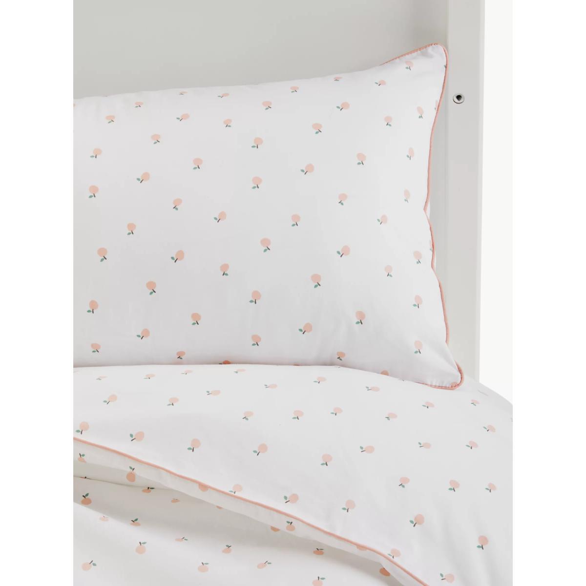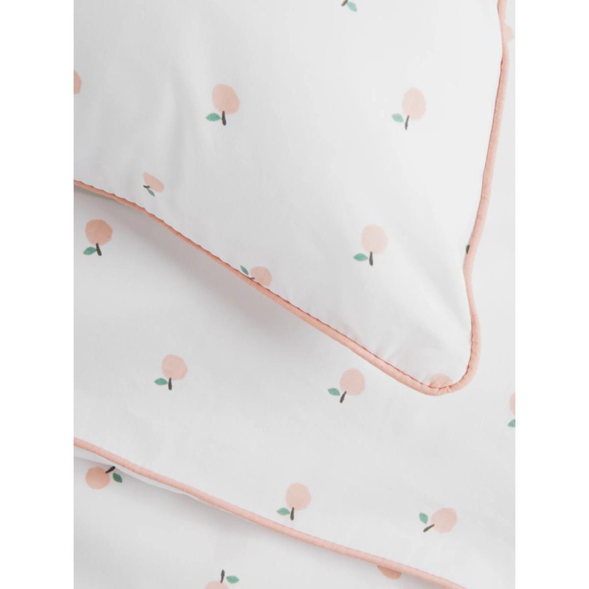 Let their dreams be as sweet as our apple print duvet and pillow cover set. This bedding set is made from pure cotton and trimmed with a contrasting edge. Crafted from pure cotton for a breathable feel that won't irritate their skin, it has a 200 thread count to ensure the little one stays comfortable at all times. This set includes one duvet cover with a junior pillowcase. Please remember: Quilts, duvets and pillows are not suitable for children under 12 months due to the risk of overheating. The Better Cotton Initiative (BCI) is a not-for-profit organisation who exists to ‘make global cotton production better for the people who produce it, better for the environment it grows in, and better for the sector’s future. BCI works with partners around the world such as WWF, Solidaridad and Cotton Connect to train farmers to produce cotton more sustainably. By buying cotton products from John Lewis, you’re supporting the training of these farmers to use water efficiently, care for the health of the soil and natural habitats, reduce the use of the most harmful chemicals and apply principles of fair and decent work. With great prices and great design, our new brand offers style and quality for modern living today. Whatever you need, there’s joy to be found in.