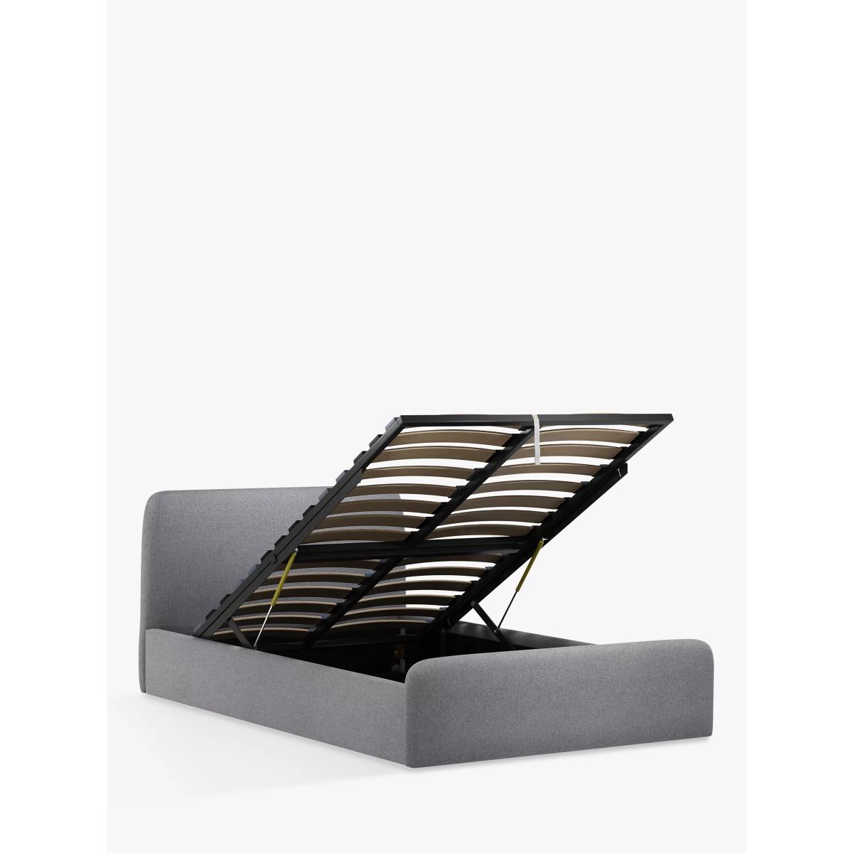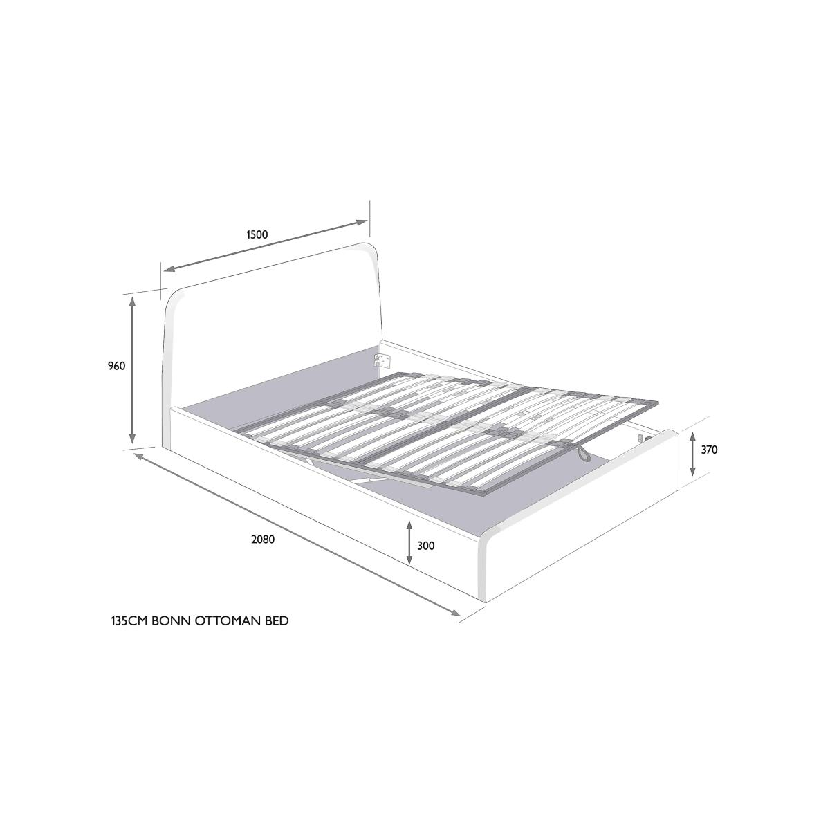 Our Bonn ottoman bed frame is simple, sturdy and brilliant for smaller bedrooms. It has a comfortable, wide headboard and sprung slats provide a supportive base for your mattress. There's plenty of storage space in the base for spare clothes and linens and we've added a handle and hydraulic arms to facilitate an easy manual lift-up. The gently curved frame will bring a softer focus to your bedroom and it's upholstered in our Saga fabric which is exceptionally durable. Plus, the frame can support a total weight of 279kg when supporting a mattress and two people. Built with Smart Slats This bed frame is designed with wider slats at the shoulders, lumbar and feet. They provide maximum support for you and your mattress so that you experience perfect spinal alignment while you sleep. The standard slat caps are black so we have added grey slat caps to ensure that you know where to place the wider slats. Want to see it first? You may want to see and get a feel for the furniture in one of our shops before ordering. We'll be able to tell you where the range you'd like to view is on display. With great prices and great design, our new brand offers style and quality for modern living today. Whatever you need, there’s joy to be found in ANYDAY.