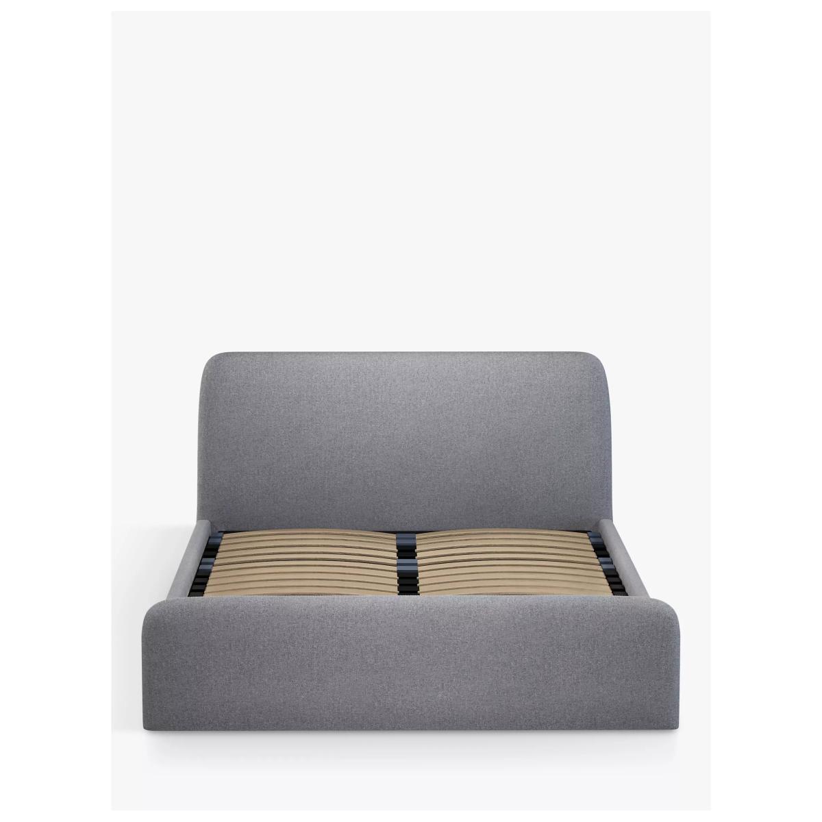 Our Bonn ottoman bed frame is simple, sturdy and brilliant for smaller bedrooms. It has a comfortable, wide headboard and sprung slats provide a supportive base for your mattress. There's plenty of storage space in the base for spare clothes and linens and we've added a handle and hydraulic arms to facilitate an easy manual lift-up. The gently curved frame will bring a softer focus to your bedroom and it's upholstered in our Saga fabric which is exceptionally durable. Plus, the frame can support a total weight of 279kg when supporting a mattress and two people. Built with Smart Slats This bed frame is designed with wider slats at the shoulders, lumbar and feet. They provide maximum support for you and your mattress so that you experience perfect spinal alignment while you sleep. The standard slat caps are black so we have added grey slat caps to ensure that you know where to place the wider slats. Want to see it first? You may want to see and get a feel for the furniture in one of our shops before ordering. We'll be able to tell you where the range you'd like to view is on display. With great prices and great design, our new brand offers style and quality for modern living today. Whatever you need, there’s joy to be found in.
