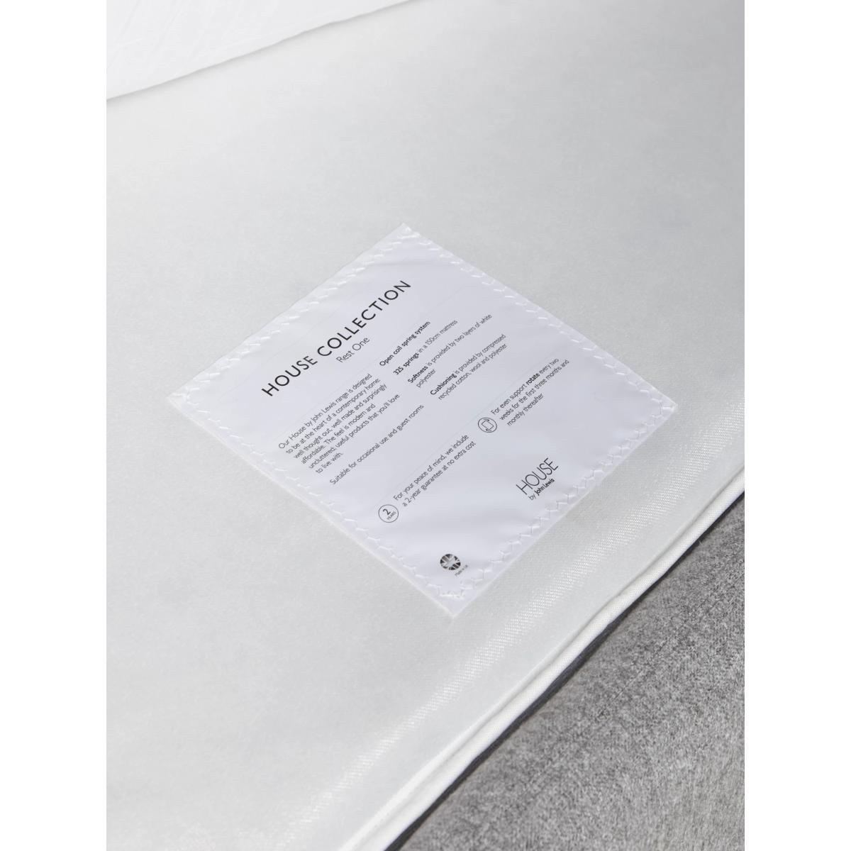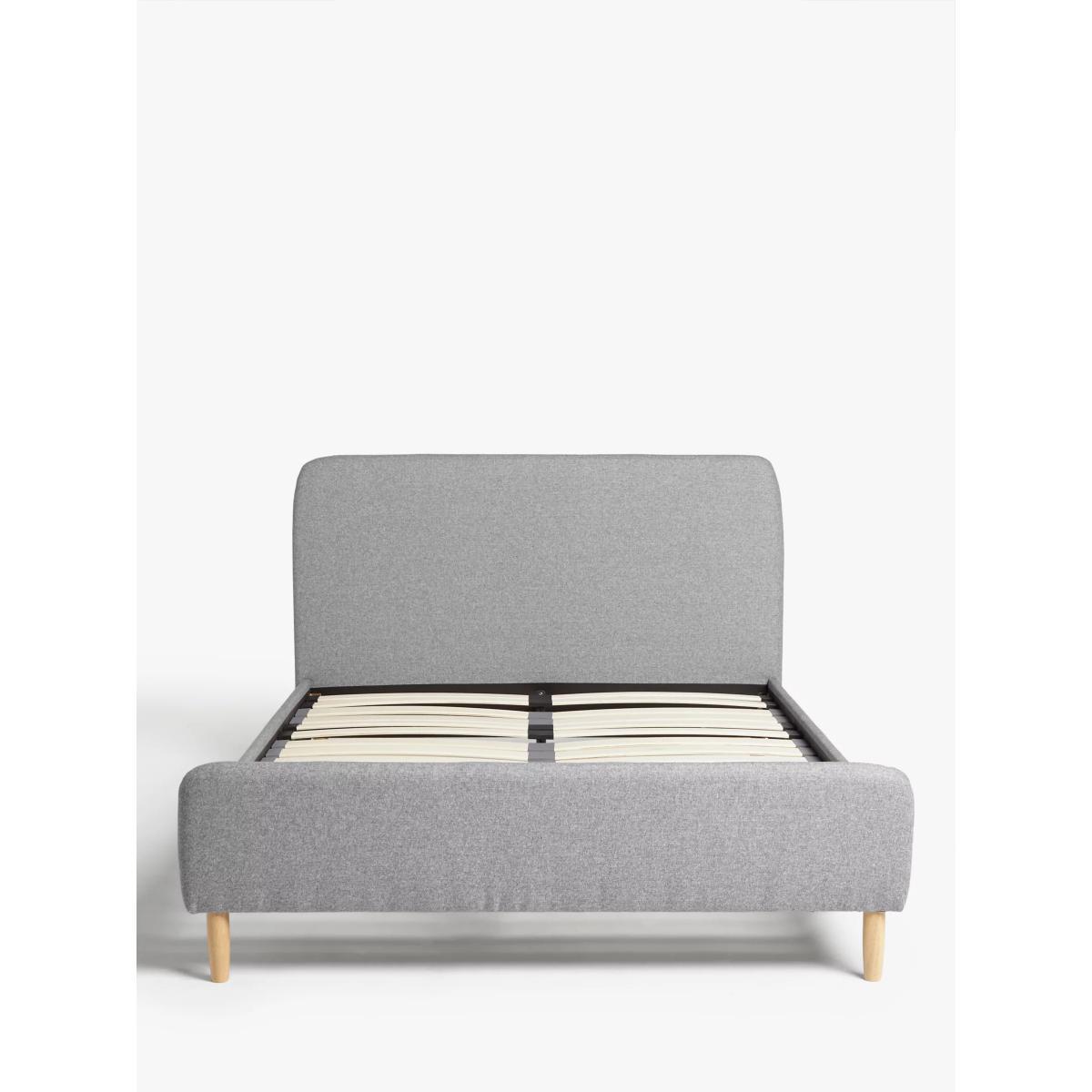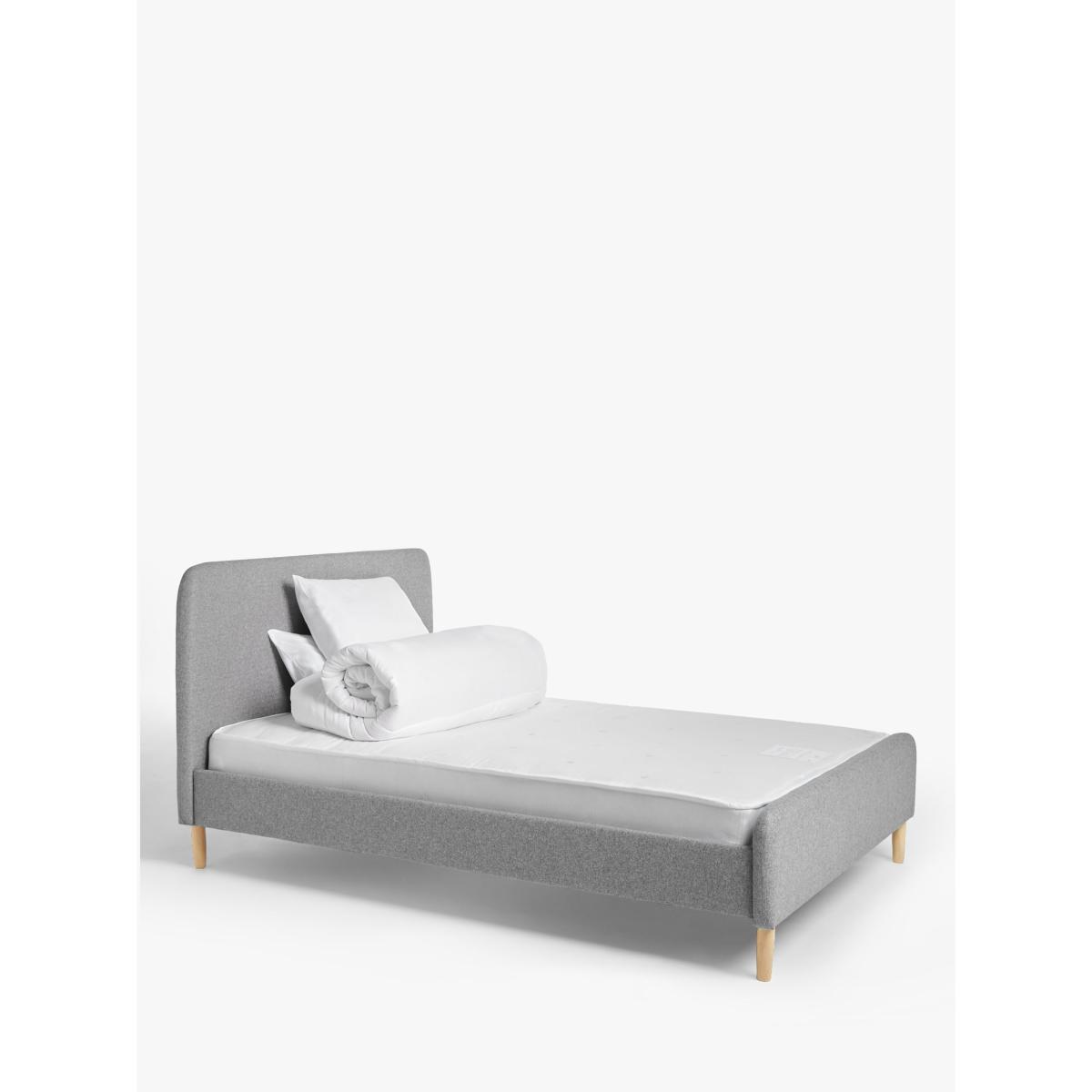 This ANYDAY John Lewis & Partners bedroom set includes: ANYDAY John Lewis & Partners Bonn Upholstered Bed Frame, Double, Saga Grey ANYDAY John Lewis & Partners Rest One Open Coil Mattress, Medium Tension, Double ANYDAY John Lewis & Partners Duvet, 10.5 Tog, Double ANYDAY John Lewis & Partners Microfibre Standard Pillow Pair, Soft/Medium The Bonn bed frame has a clean, contemporary design that incorporates soft curves and a wide headboard to bring comfort to your bed space. Featuring sprung slats that offer additional support for you and your mattress, it's supported by minimalist wooden legs for a sleek finish. Designed with wider slats at the shoulders, lumbar and feet to provide maximum support for you and your mattress, and enhance perfect spinal alignment while you sleep. Standard slat caps are black so we have added grey slat caps to ensure that you know where to place the wider slats. This bed frame is upholstered in our Band A fabric, Saga. Woven with man-made fibres, it's exceptionally durable and versatile. The Rest One mattress is designed with an open-coil spring system that offers medium support. Ideal for occasional use, it's filled with polyester for softness, as well as recycled cotton, wool and polyester for added cushioning and support. Its sleep surface and border are covered in a non-quilted woven fabric. The 10.5 Tog duvet has a hollowfibre filling that's suitable for regular washing. Ideal for everyday, it has a light, yet warm feel. Washable up to 40°C. Tumble dry on a cool setting until completely dry. Do not dry clean or bleach. The Microfibre Standard Pillows are perfect for those who sleep on their front or back and have a soft to medium level of firmness. Supplied as a pair, they provide all the cosy cushioning you need to achieve a great night's sleep. Washable up to 40°C. Tumble dry on a cool setting until completely dry. Do not dry clean or bleach. Worth Knowing The Bonn bed frame has a 1 year guarantee and the mattress and bedding both have a 2 year guarantee.