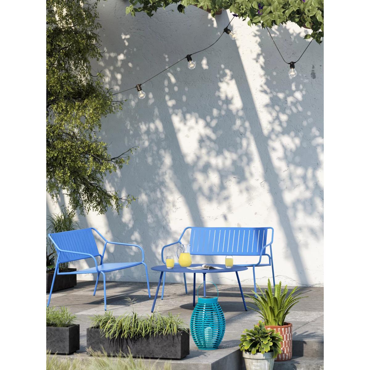 Bright and modern, this two-seater sofa is a durable and weather-resistant design, made of powder-coated steel, for use in a conservatory or outdoors in the garden or on the patio. The sofa arrives fully assembled ready for immediate use. Easy to maintain, all it needs is a quick wipe down with warm soapy water to keep it clean. Team it with other metal garden furniture in this range in a matching or contrasting on-trend colour. Key features: 2-seater garden sofa Weather-resistant powder-coated steel Robust design withstands weight up to 34 stone (220kg) Fully assembled Easy to clean and maintain With great prices and great design, our new brand offers style and quality for modern living today. Whatever you need, there's joy to be found in. Want to see it first? You may want to see and get a feel for the product in one of our shops before ordering. We'll be able to tell you where the range you'd like to view is on display.