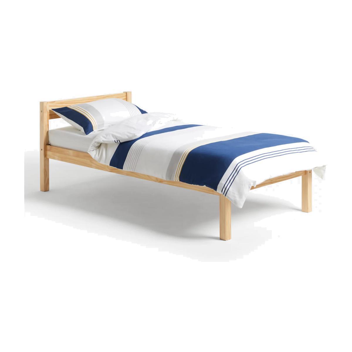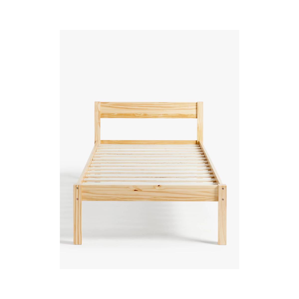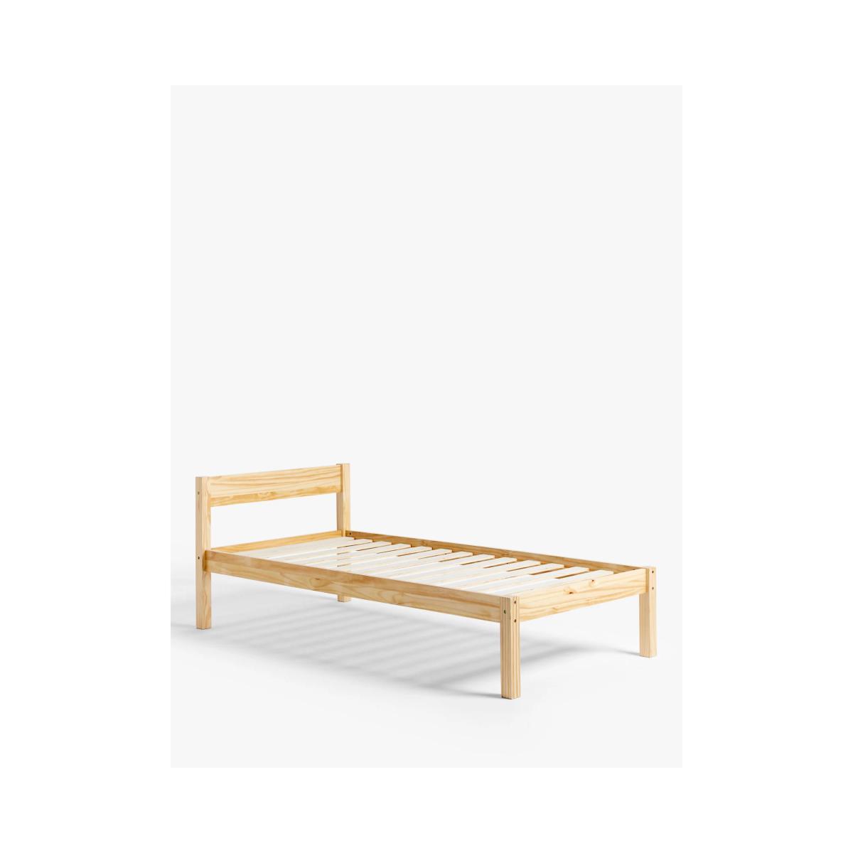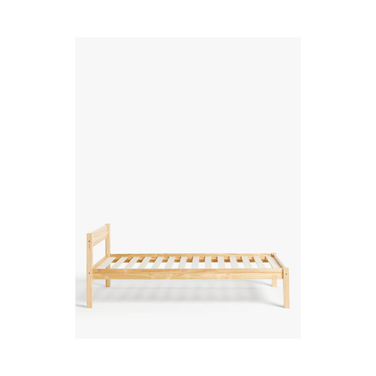 Made entirely from solid raw pine, this brilliant-value bed frame is simple, clean-lined and impressively sturdy. Its design highlights the natural markings and grains in the wood and solid slats in the base provide a firmer foundation for your mattress. There's also lots of space underneath the frame which can be used for storage. Worth knowing: Child Compliant bed frames This bed conforms to BS 8509:2008+A1:2011 (Childrens beds for domestic use. Safety requirements and test methods). We recommend it's used with a standard single mattress, L190 x W90cm. Not suitable for children under the age of 4 years. Want to see it first? You may want to see and get a feel for the furniture in one of our shops before ordering. We'll be able to tell you where the range you'd like to view is on display. With great prices and great design, our new brand offers style and quality for modern living today. Whatever you need, there’s joy to be found in.