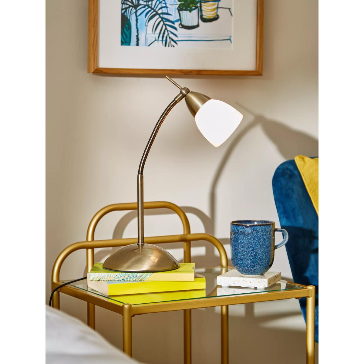 Dig out your favourite book, as this great-value task lamp is a useful and space-saving option for your bedside. It's made from high-quality metal with a frosted glass shade that diffuses the light. Simply tap the base to turn it on and again to turn it off. Plus, the arm is adjustable so you can direct the light exactly where you need it. With great prices and great design, our new brand offers style and quality for modern living today. Whatever you need, there's joy to be found in.