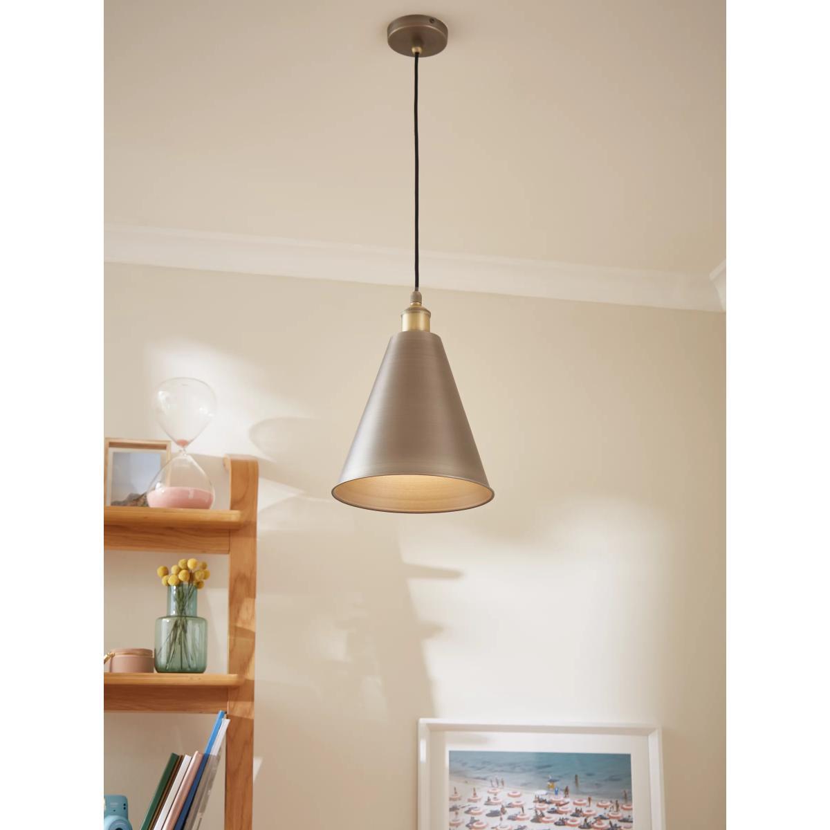 I really like the John Lewis & Partners Cote Cone, as it offers a sleek, modern look that works particularly well in contemporary and minimalist interiors. Its simple conical shape and warm metallic finish make it versatile enough to sit above dining tables, kitchen islands, or even in a relaxed living space. Practical styling tips include pairing it with exposed filament bulbs or even dimmable fittings to control the mood. For a layered lighting scheme, it works beautifully with wall lights or floor lamps in similar warm metal tones, adding a cohesive, understated elegance to the room. Overall, it’s a reliable choice for those looking to add a touch of understated sophistication without overpowering the space.