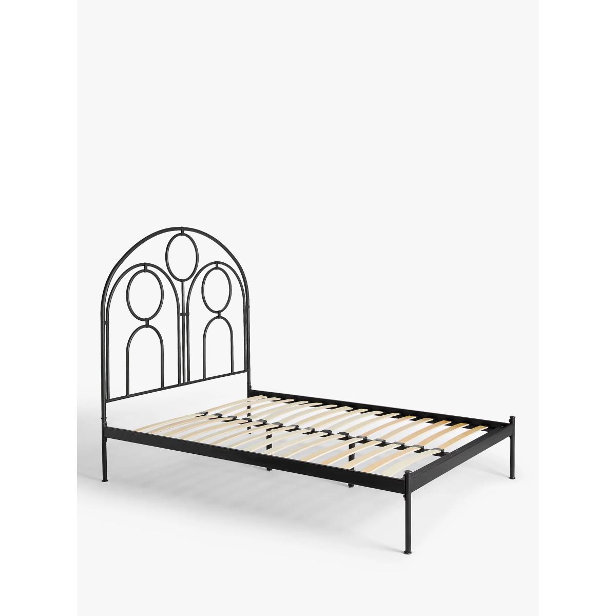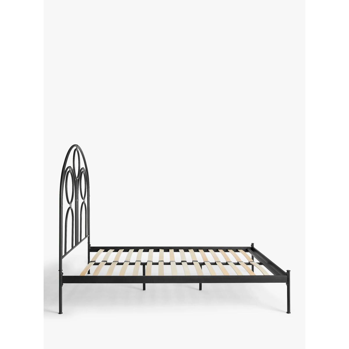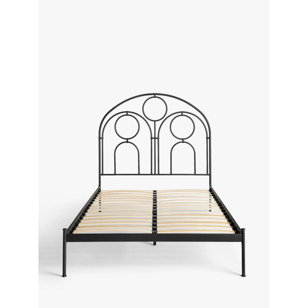 Inspired by Art-Deco design, this decorative bed frame will inject character into your bedroom, especially next to plain walls. Made from high-quality metal that's welded for extra durability, the curved shapes on the headboard evoke an age of opulence with a modern-day edge, thanks to its on-trend black finish. Plus, the base features supportive sprung slats. It's a distinctive style that's adaptable for both vintage and more contemporary inspired interiors. Want to see it first? You may want to see and get a feel for the furniture in one of our shops before ordering. We'll be able to tell you where the range you'd like to view is on display. With great prices and great design, our new brand offers style and quality for modern living today. Whatever you need, there’s joy to be found in.