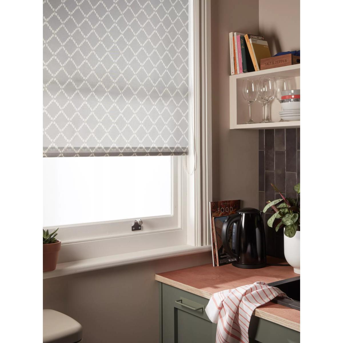 Our Diamond Ikat blind will complement contemporary decor with its simple geometric pattern. As it's a daylight blind it will give your room some privacy without blocking out all light. Key features: Can be installed either inside or outside the window recess, to the wall or ceiling Can be standard or reverse rolled. Standard gives a close fit to the window, helping eliminate light. Reverse brings the material forward over the roll which conceals it and creates space between the blind and window Chain mechanism can be attached on the left or right-hand side, without affecting the way the blind is rolled Width can be cut to size Supplied with easy fit universal brackets Includes safety devices to keep children safe Worth knowing... The width stated in our product specifications is the total width of the blind including mechanisms and brackets. The width of the fabric alone will be a few centimetres less than this. Safety warning Young children can be strangled by loops in pull cords, chains, tapes and inner cords that operate the product. To avoid strangulation and entanglement, keep cords out of the reach of young children - cords may become wrapped around a child's neck Move beds, cots and furniture away from window covering cords Do not tie cords together. Make sure cords do not twist and create a loop More information on child safety can be found on our With great prices and great design, our new brand offers style and quality for modern living today. Whatever you need, there's joy to be found in.