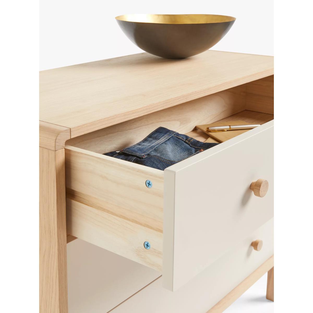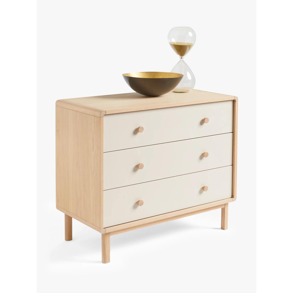Thanks to the coloured drawer fronts, this chest of drawers will add a subtle accent of colour to your bedroom and provides a generous amount of storage space thanks to three deep drawers. It's carefully made from high-quality timbers and we like its casually curved profile and warm, natural tones. Want to see it first? You may want to see and get a feel for the furniture in one of our shops before ordering. We'll be able to tell you where the range you'd like to view is on display. With great prices and great design, our new brand offers style and quality for modern living today. Whatever you need, there's joy to be found in ANYDAY.