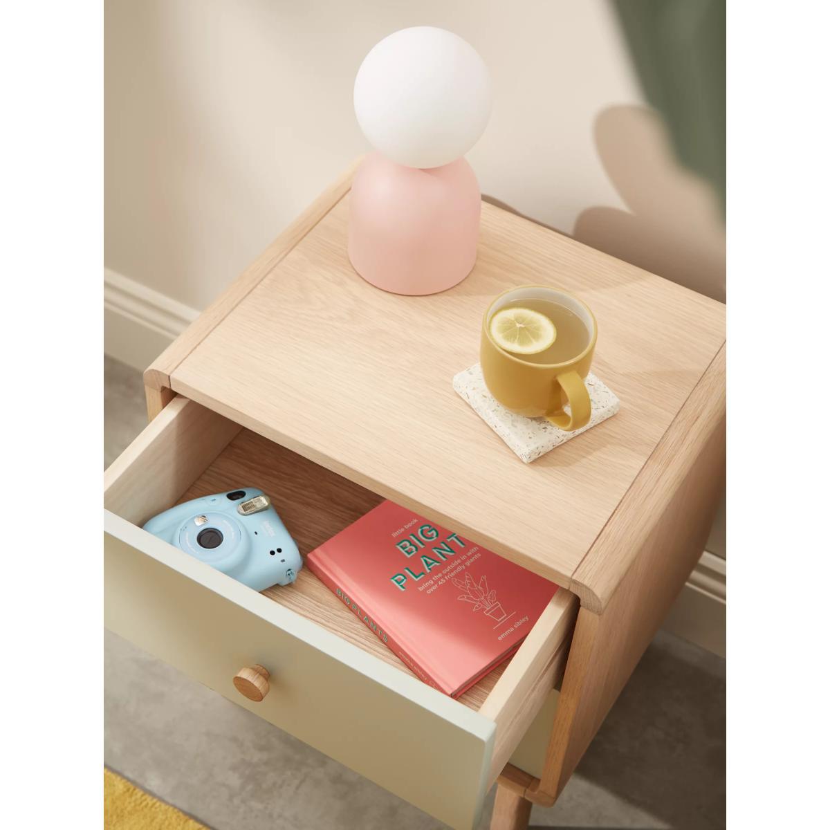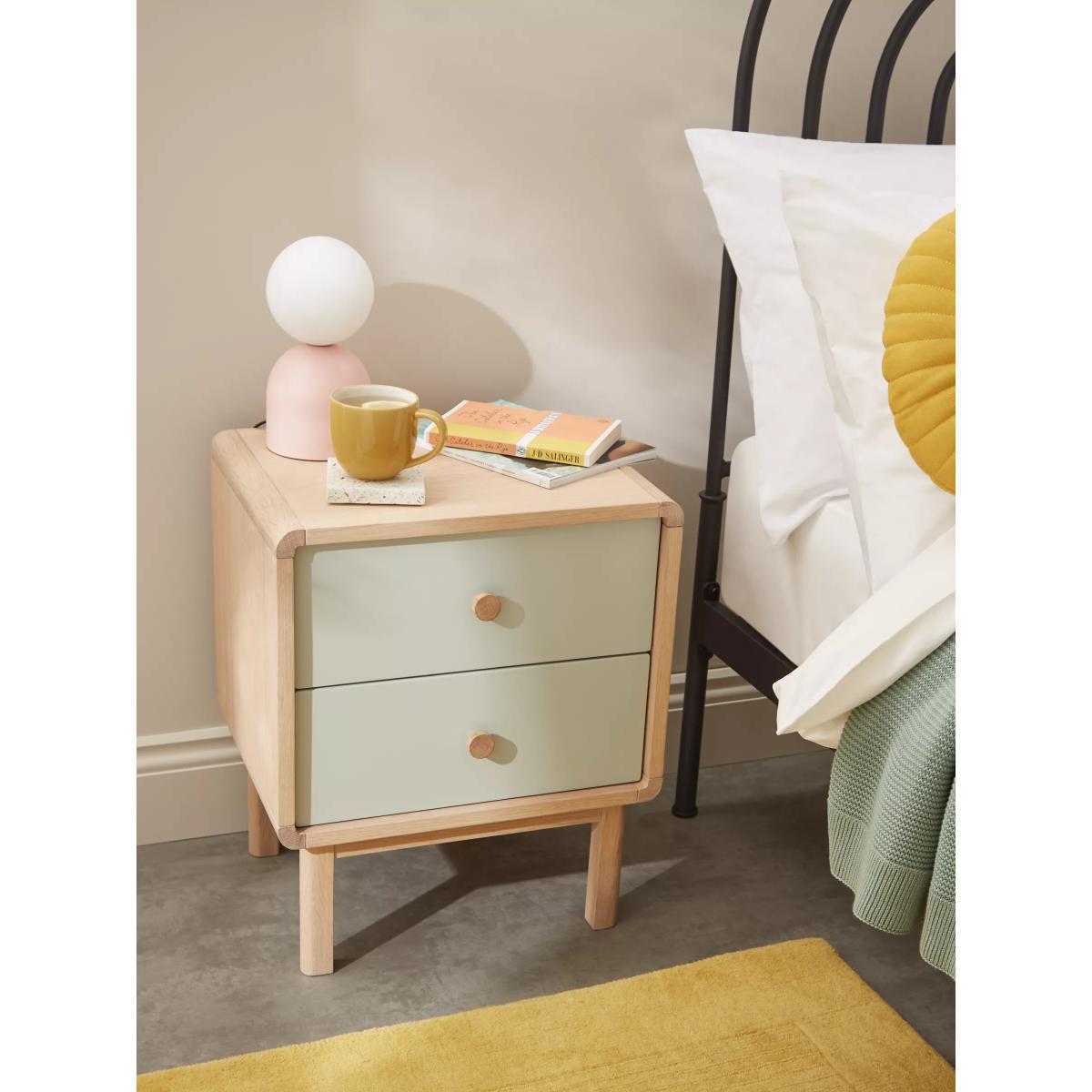 Thanks to the coloured drawer fronts, these bedside tables make it easy to introduce a subtle accent of colour to your bedroom, while providing just the right amount of storage space for beside the bed. Compact, curved and carefully made from high-quality timbers, we like its sleek style and naturally warm tones. Want to see it first? You may want to see and get a feel for the furniture in one of our shops before ordering. We'll be able to tell you where the range you'd like to view is on display. With great prices and great design, our new brand offers style and quality for modern living today. Whatever you need, there’s joy to be found in.