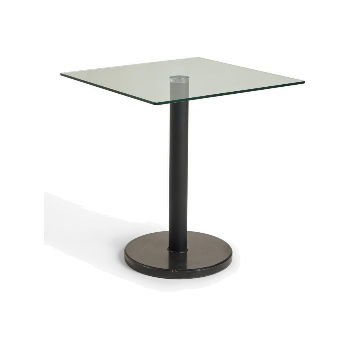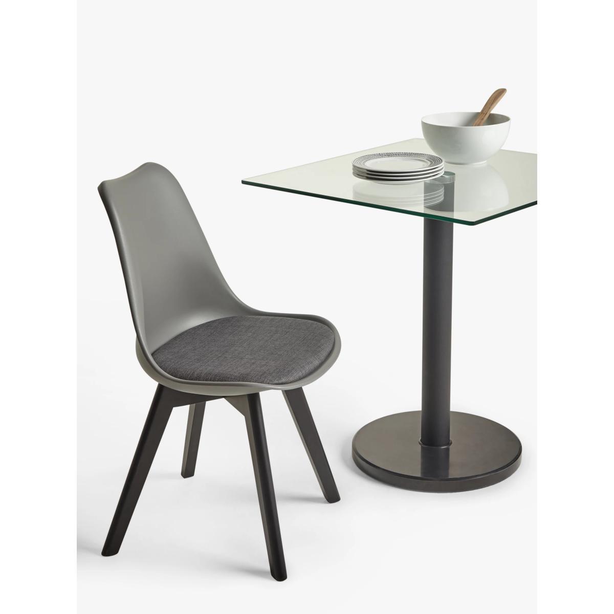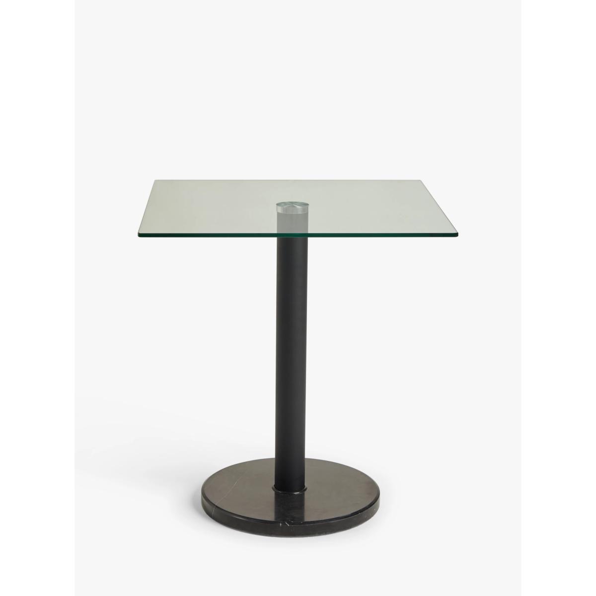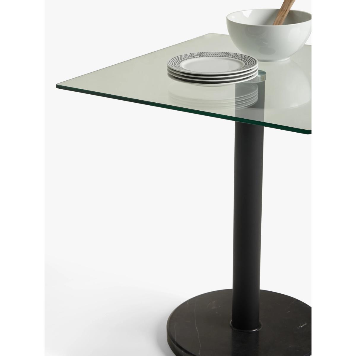 Create a sophisticated dining setting, even if you're restricted with space. Two people can sit comfortably at this square dining table, which we've made from a combination of high-quality materials. While minimalist in style, the pedestal frame is reassuringly sturdy thanks to a metal stem and thick, black marble base. The surface top is made from clear tempered glass which is easy to wipe and keep clean. We like how each table base will have a unique look, as marble is a natural material with subtle variations. Want to see it first? You may want to see and get a feel for the furniture in one of our shops before ordering. We'll be able to tell you where the range you'd like to view is on display. With great prices and great design, our new brand offers style and quality for modern living today. Whatever you need, there's joy to be found in.