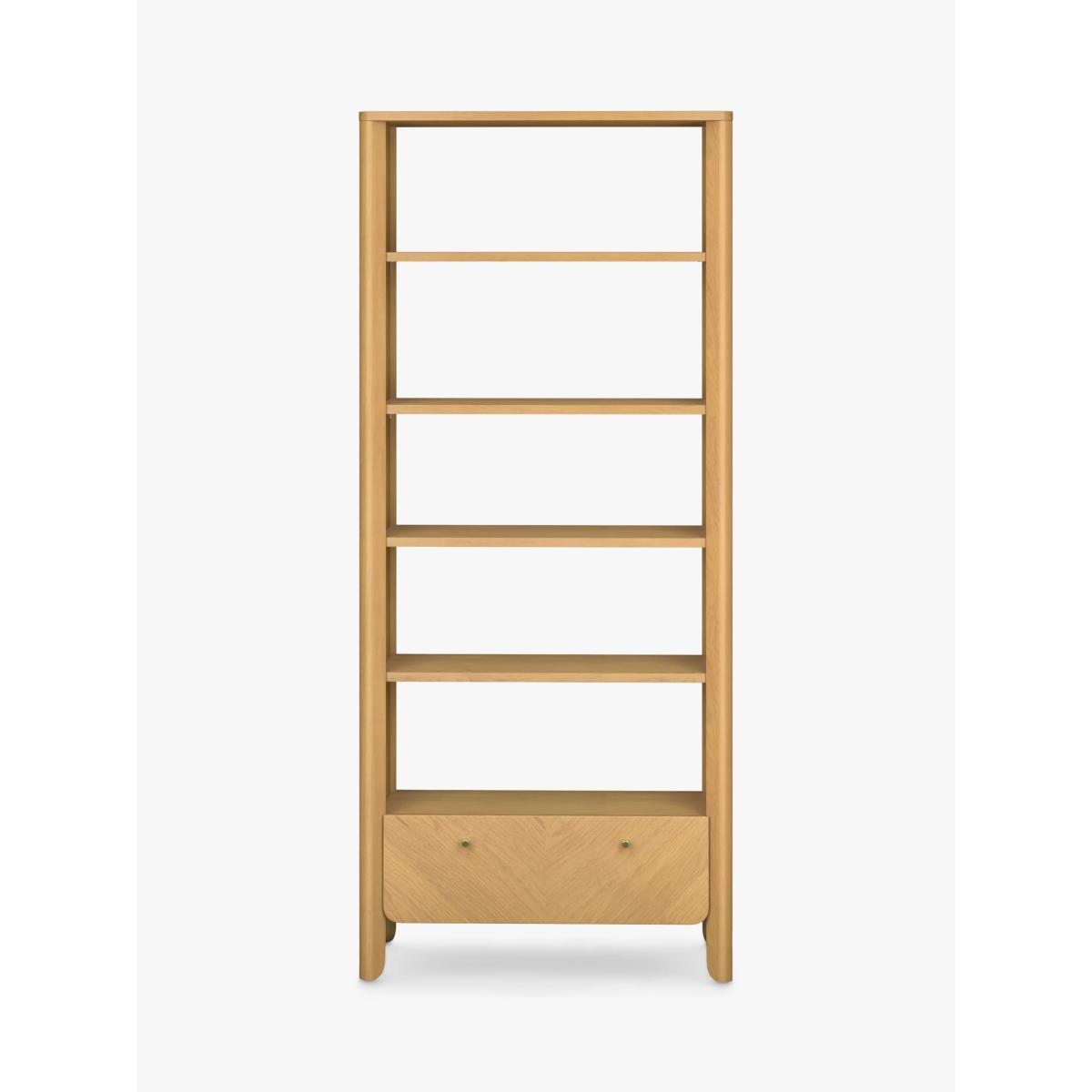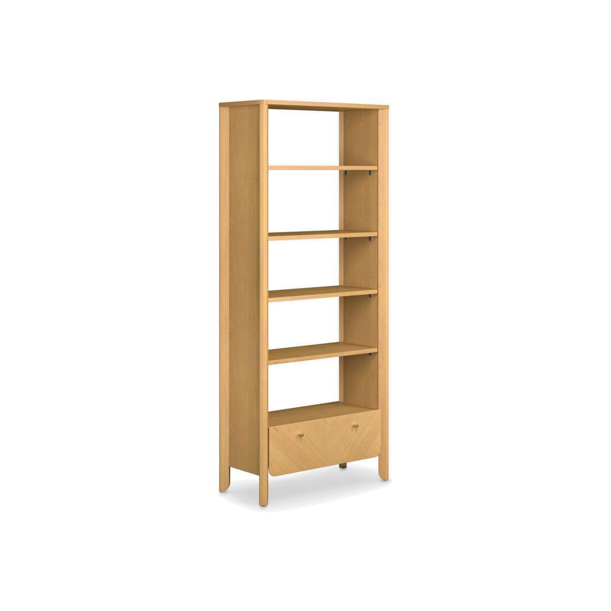Our Fern range of furniture helps you to curate a modern, Scandi-inspired home, for less. Narrow, yet spacious, we've made this shelving unit from a combination of high-quality timbers, including solid oak and pine wood. There's a handy storage drawer and two of the shelves are adjustable, while the other two are fixed. We like how the chevron pattern is visible in the wood, as well as the curved edges which gives the frame a softer look. Plus, we've coated it in a protective lacquer for reassuring durability. Available in a natural or painted finish, so you can keep your space calm and warm or embrace a subtle injection of colour. Want to see it first? You may want to see and get a feel for the furniture in one of our shops before ordering. We'll be able to tell you where the range you'd like to view is on display. With great prices and great design, our new brand offers style and quality for modern living today. Whatever you need, there's joy to be found in.