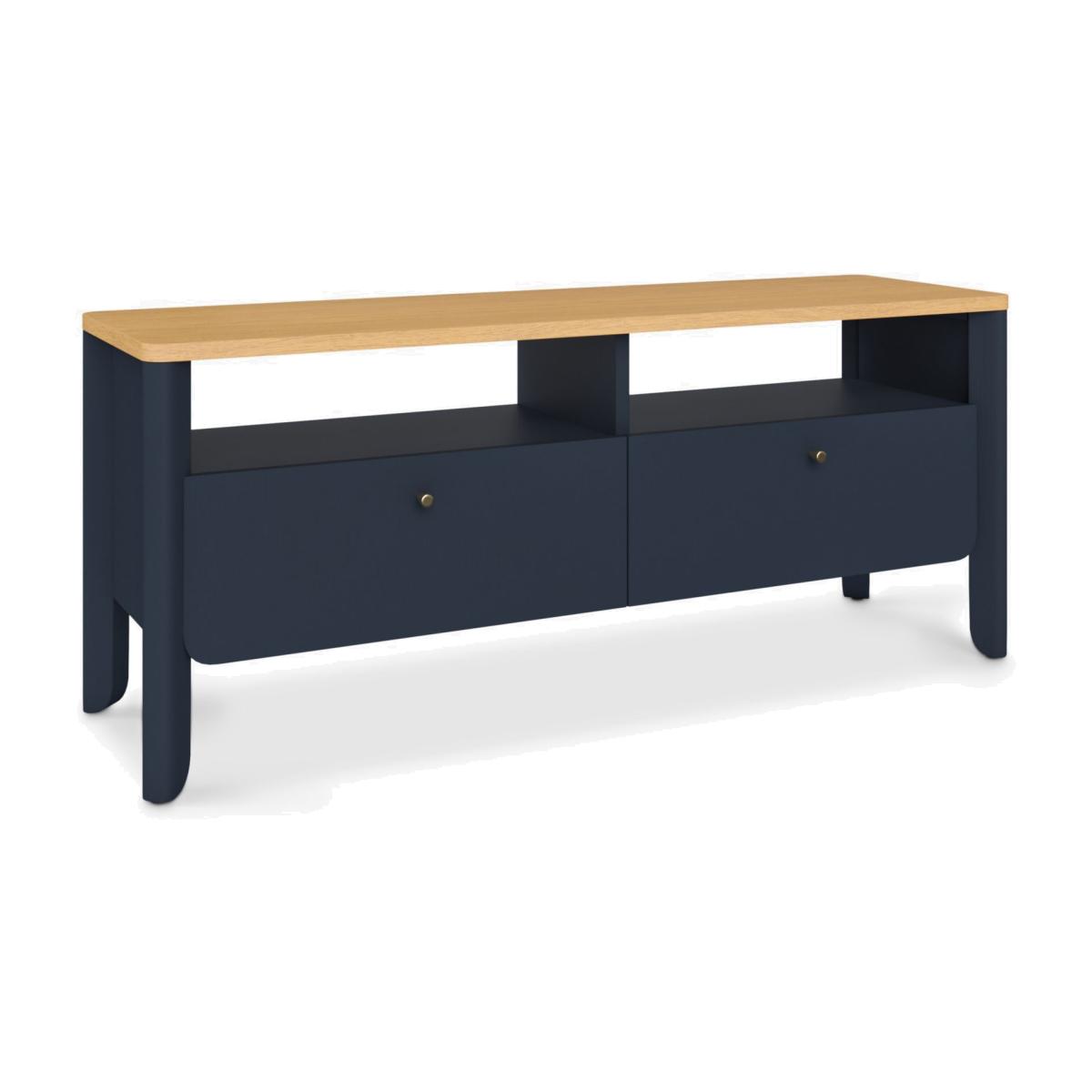 Our Fern range of furniture helps you to curate a modern, Scandi-inspired home. There's a useful amount of storage space on this TV stand, which is made from a combination of high-quality timbers, including solid oak, MDF and pine wood. We like how the chevron detail in the wood is visible on the drawer fronts and how the rounded edges of the frame create a softer look. We've coated it in a protective lacquer for reassuring durability, and it's available in a natural or painted finish, so you can add a pop of colour to your space. Want to see it first? You may want to see and get a feel for the furniture in one of our shops before ordering. We'll be able to tell you where the range you'd like to view is on display. With great prices and great design, our new brand offers style and quality for modern living today. Whatever you need, there's joy to be found in ANYDAY.