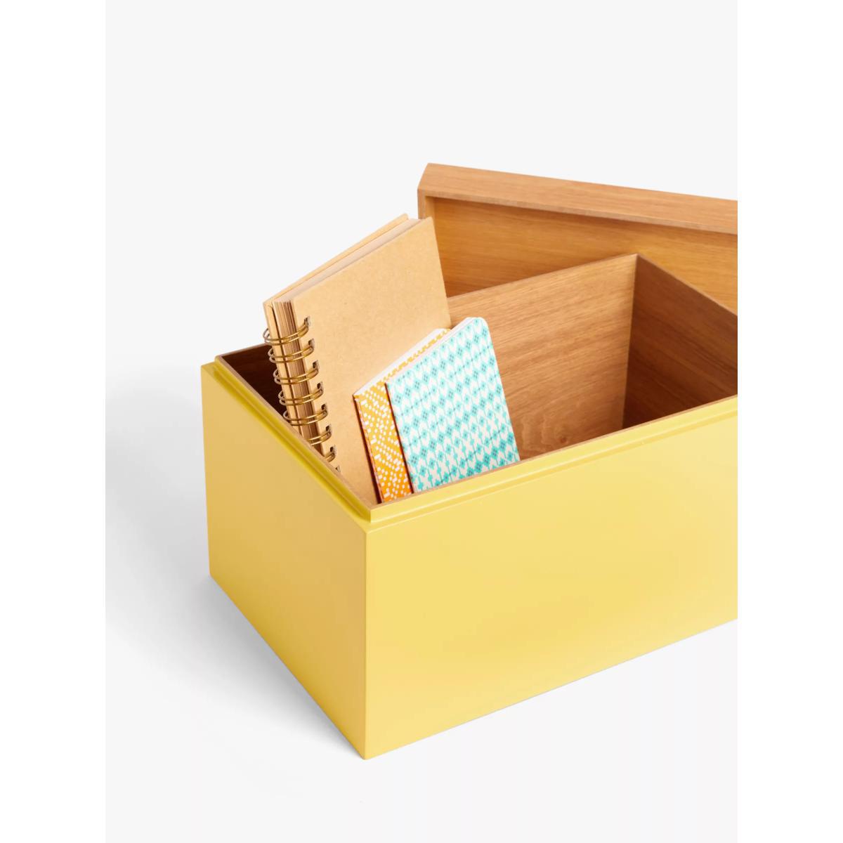 I really like this John Lewis & Partners storage box for its clean, minimalist look and functional design. The lacquered finish gives it a sleek, modern feel that can elevate a variety of interior styles, from Scandi and contemporary to more playful, colourful schemes. It works particularly well in living rooms or bedrooms where you need practical storage without sacrificing style. For styling tips, try pairing it with neutral textiles and decor to let the box stand out, or colour-coordinate with other accents in yellow or complementary shades for a coordinated look. Its size makes it versatile for storing everything from blankets to accessories, and placing it on open shelving or under a console adds both organisation and visual interest.