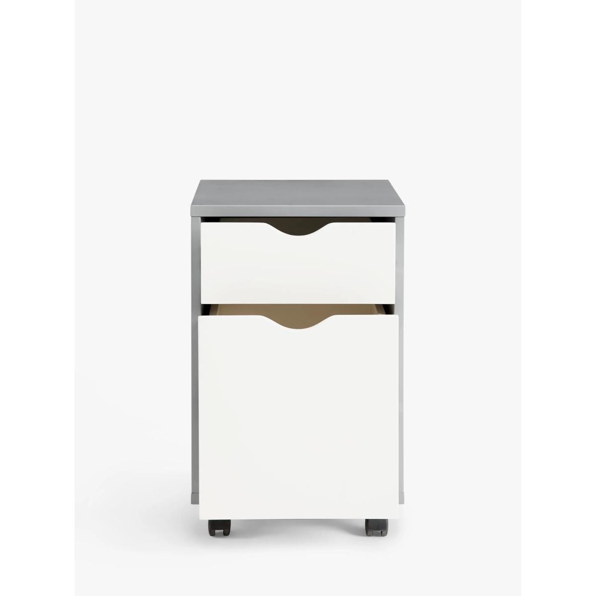 Tuck this practical filing cabinet under our coordinating Loft desk to complete your home office set up. The drawers glide open and there's ample storage space for paperwork and files. Plus, castors on the base means it's easy to move around your room. Good to know The small drawer can take a maximum load of 3kg and the deeper drawer can take a maximum load of 5kg. Want to see it first? You may want to see and get a feel for the furniture in one of our shops before ordering. We'll be able to tell you where the range you'd like to view is on display. With great prices and great design, our new brand offers style and quality for modern living today. Whatever you need, there’s joy to be found in.
