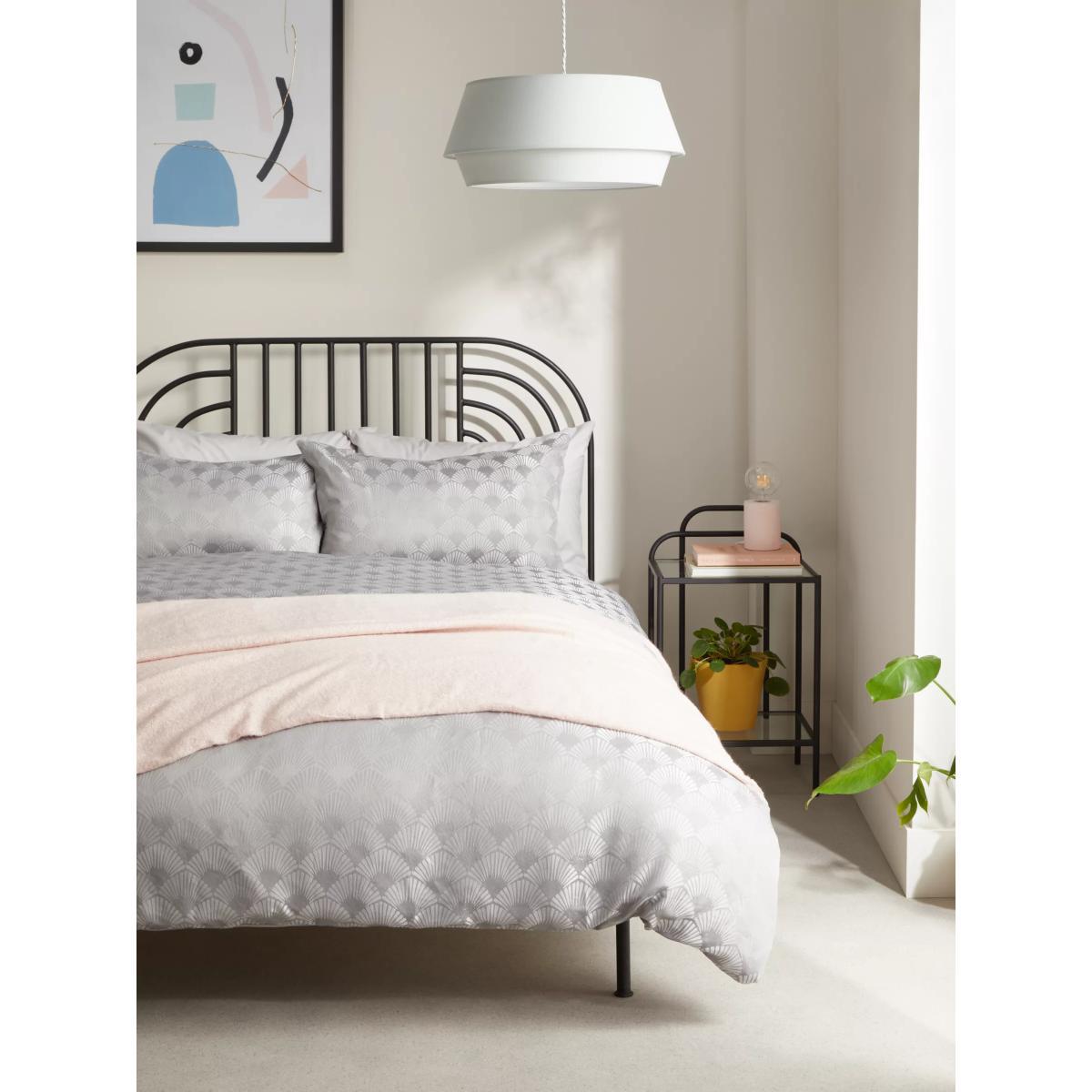 Art Deco-inspired, Jacquard bedding made from a blend of polyester and cotton. It dries quickly, keeps its colour and size and needs minimal ironing. The single set comes with one standard pillowcase, while the double, king and super king sets come with two standard pillowcases. With great prices and great design, our new brand offers style and quality for modern living today. Whatever you need, there’s joy to be found in. Have you thought about sheeting? Shop. Bedding sizes To fit duvet/pillow size (cm) Standard pillowcase, L75 x W50cm Single duvet cover, L200 x W135cm Double duvet cover, L200 x W200cm King duvet cover, L220 x W225cm Super king duvet cover, L220 x W260cm