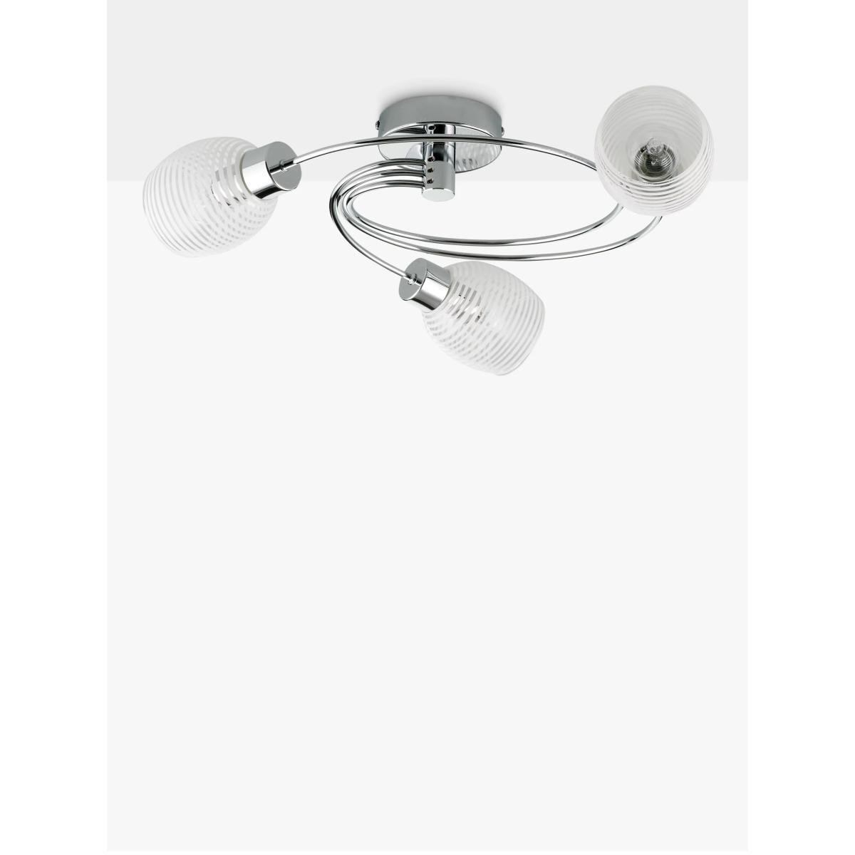 The swirl shape of this ceiling light will draw the eye, especially as it's made from smart, polished chrome. We like how the three glass shades are decorated with ribbed detail, as it gives the fitting a textured and distinctive look. Ideal for creating a warm glow of light in your space. With great prices and great design, our new brand offers style and quality for modern living today. Whatever you need, there’s joy to be found in.