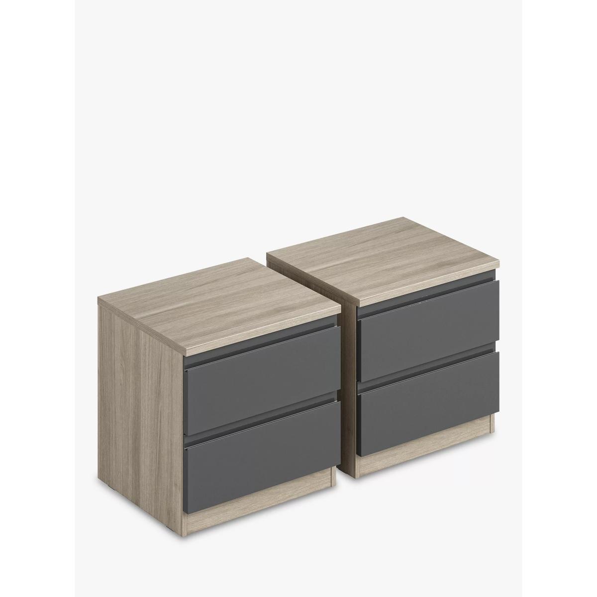 Our Mix it range offers the flexibility to create your own contemporary, self-assembly bedroom furniture. Italian designed and manufactured, these bedside tables are supplied as a pair and flat-packed for straightforward assembly. They're ideal for either side of your bed frame and we've made them from high-quality chipboard and MDF. The two spacious drawers have integrated handles for a sleek finish. Each table measures: H49.6 x W50.3 x D43.8cm and weighs 17kg. The drawer depth is 39cm Want to see it first? You may want to see and get a feel for the furniture in one of our shops before ordering. We'll be able to tell you where the range you'd like to view is on display.