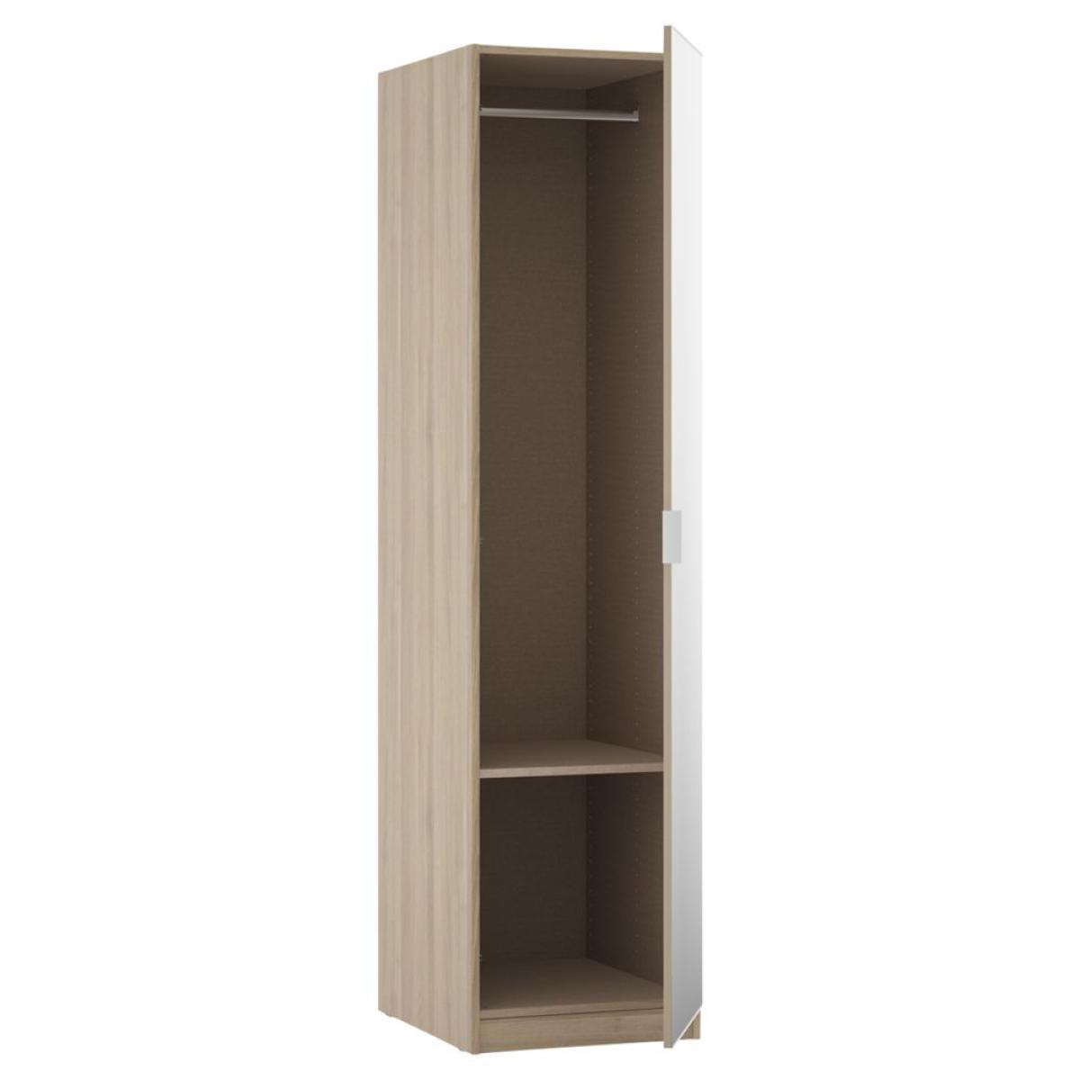 Mix It offers the flexibility to create your own contemporary, self-assembly bedroom furniture. Italian designed and manufactured, we've put together this single wardrobe for you, but you can choose your own colours and combinations by mixing and matching pieces from the full range, which is available in selected shops. This is a brilliant choice for smaller rooms, especially thanks to the mirrored door which will help your room feel bigger. It's made from sturdy foil-wrapped chipboard and MDF with a natural, grey ash coloured frame. There's an adjustable shelf and hanging rail inside and the mirrored door can be mounted and hinged on either side of the frame. This set includes: Mix It single wardrobe frame, grey ash. H201 x W59.9 x D50cm. Weight: 57kg Mix It single wardrobe mirrored door Mix It wardrobe handle, x1 Good to know Wall fittings are provided and we recommend fixing this wardrobe to the wall to prevent over-balancing. Spot marks indicate handle positions. You'll need to drill through the spot marks to fix the handles. Full assembly instructions are provided. With great prices and great design, our new brand offers style and quality for modern living today. Whatever you need, there's joy to be found in.