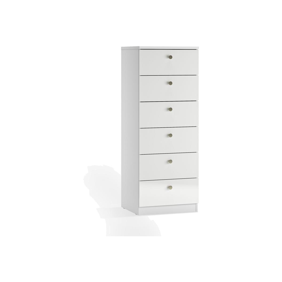 Our Mix It range offers the flexibility to create your own contemporary, self-assembly bedroom furniture. Italian designed and manufactured, this narrow chest of drawers is supplied flat-packed and offers straightforward assembly. We've created this set for you, but different colours and combinations can be created by mixing and matching pieces from the full range, available in selected shops. Made from foil-wrapped MDF, this drawer chest is ideal for more compact spaces. Six spacious drawers provide convenient storage space and we've added small knob handles in a nickel finish to give it a modern look. Full assembly instructions are provided. Key information: Overall dimensions: H131 x W50 x D45cm Materials: Foil-wrapped MDF, Chipboard, Metal
